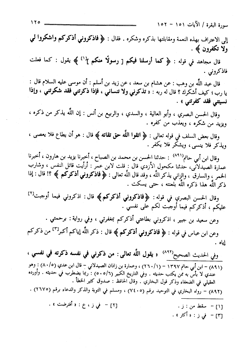فَاذْكُرُونِي أَذْكُرْكُمْ وَاشْكُرُوا لِي وَلَا تَكْفُرُونِ (152)