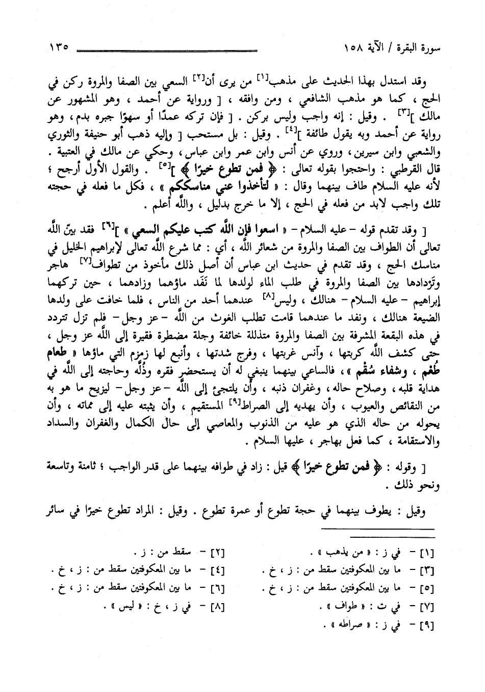 وَقَوْله " فَمَنْ تَطَوَّعَ خَيْرًا " قِيلَ زَادَ فِي طَوَافه بَيْنهمَا عَلَى قَدْر الْوَاجِب ثَامِنَة وَتَاسِعَة وَنَحْو ذَلِكَ وَقِيلَ يَطُوف بَيْنهمَا فِي حَجَّة تَطَوُّع أَوْ عُمْرَة تَطَوُّع وَقِيلَ الْمُرَاد تَطَوَّعَ خَيْرًا فِي سَائِر