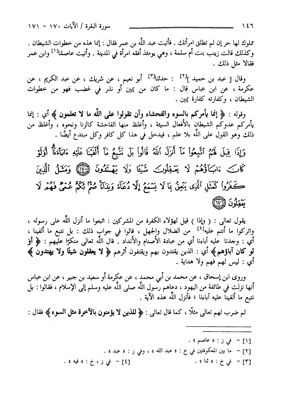 وَإِذَا قِيلَ لَهُمُ اتَّبِعُوا مَا أَنْزَلَ اللَّهُ قَالُوا بَلْ نَتَّبِعُ مَا أَلْفَيْنَا عَلَيْهِ آَبَاءَنَا أَوَلَوْ كَانَ آَبَاؤُهُمْ لَا يَعْقِلُونَ شَيْئًا وَلَا يَهْتَدُونَ (170)