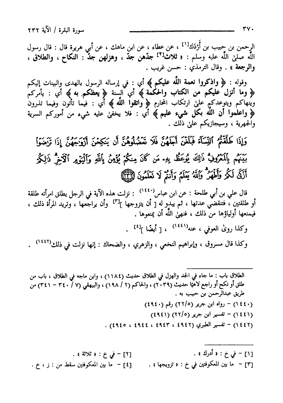 الرَّحْمَن بْن حَبِيب بْن أَدْرَكَ عَنْ عَطَاء عَنْ اِبْن مَاهَكَ عَنْ أَبِي هُرَيْرَة قَالَ : قَالَ رَسُول اللَّه - صَلَّى اللَّه عَلَيْهِ وَسَلَّمَ - " ثَلَاث جِدُّهُنَّ جِدٌّ وَهَزْلُهُنَّ جِدٌّ النِّكَاحُ وَالطَّلَاقُ وَالرَّجْعَةُ " وَقَالَ التِّرْمِذِيّ : حَسَن غَرِيب .