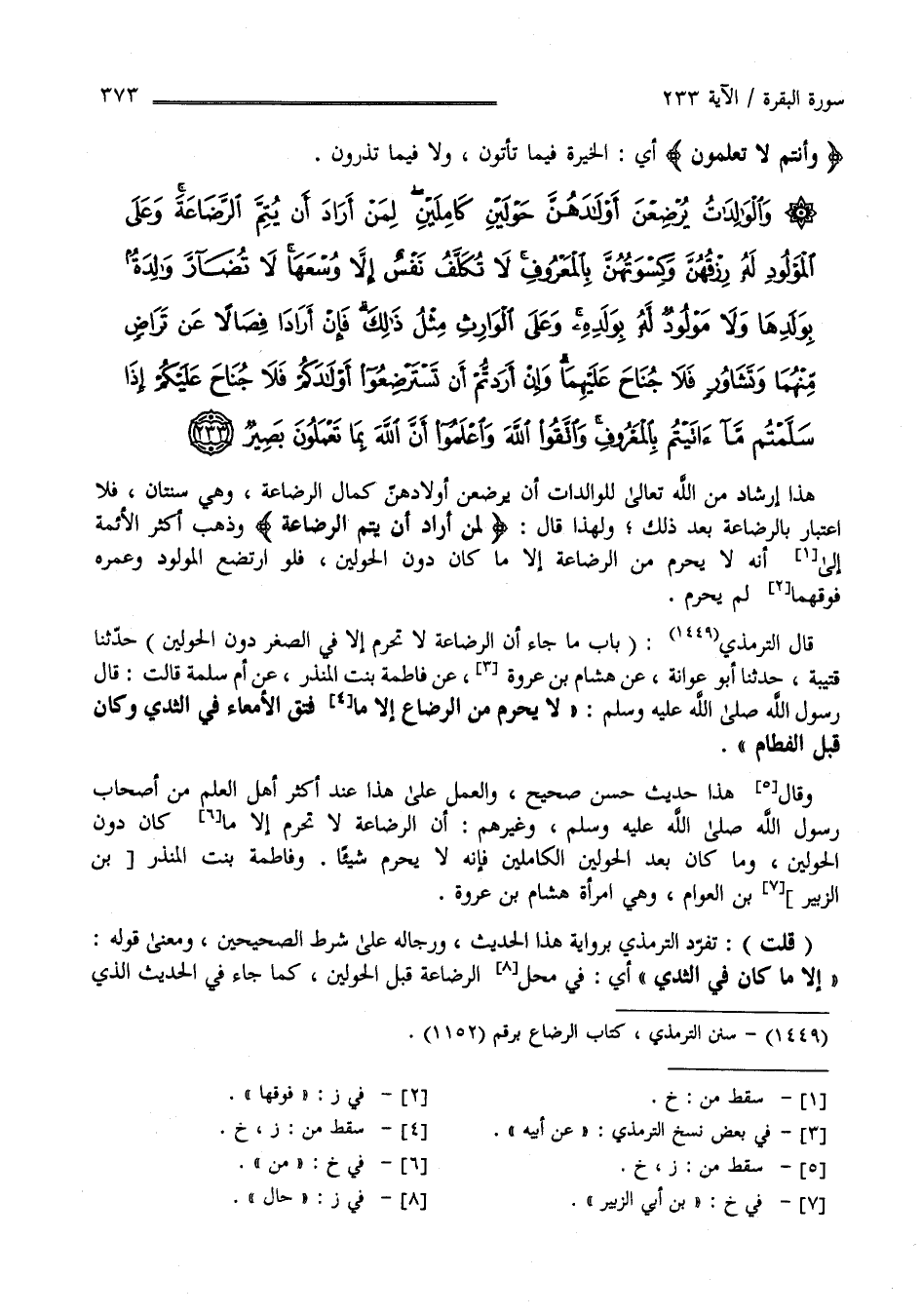 وَالْوَالِدَاتُ يُرْضِعْنَ أَوْلَادَهُنَّ حَوْلَيْنِ كَامِلَيْنِ لِمَنْ أَرَادَ أَنْ يُتِمَّ الرَّضَاعَةَ وَعَلَى الْمَوْلُودِ لَهُ رِزْقُهُنَّ وَكِسْوَتُهُنَّ بِالْمَعْرُوفِ لَا تُكَلَّفُ نَفْسٌ إِلَّا وُسْعَهَا لَا تُضَارَّ وَالِدَةٌ بِوَلَدِهَا وَلَا مَوْلُودٌ لَهُ بِوَلَدِهِ وَعَلَى الْوَارِثِ مِثْلُ ذَلِكَ فَإِنْ أَرَادَا فِصَالًا عَنْ تَرَاضٍ مِنْهُمَا وَتَشَاوُرٍ فَلَا جُنَاحَ عَلَيْهِمَا وَإِنْ أَرَدْتُمْ أَنْ تَسْتَرْضِعُوا أَوْلَادَكُمْ فَلَا جُنَاحَ عَلَيْكُمْ إِذَا سَلَّمْتُمْ مَا آتَيْتُمْ بِالْمَعْرُوفِ وَاتَّقُوا اللَّهَ وَاعْلَمُوا أَنَّ اللَّهَ بِمَا تَعْمَلُونَ بَصِيرٌ