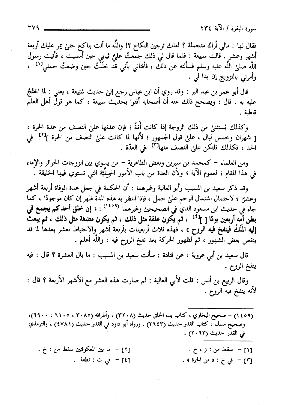 قَالَ سَعِيد بْن أَبِي عَرُوبَة عَنْ قَتَادَة سَأَلْت سَعِيد بْن الْمُسَيِّب مَا بَال الْعَشَرَة ؟ قَالَ : فِيهِ يُنْفَخ الرُّوح وَقَالَ الرَّبِيع بْن أَنَس : قُلْت لِأَبِي الْعَالِيَة لِمَ صَارَتْ هَذِهِ الْعَشْر مَعَ الْأَشْهُر الْأَرْبَعَة ؟ قَالَ : لِأَنْ يُنْفَخ فِيهِ الرُّوح