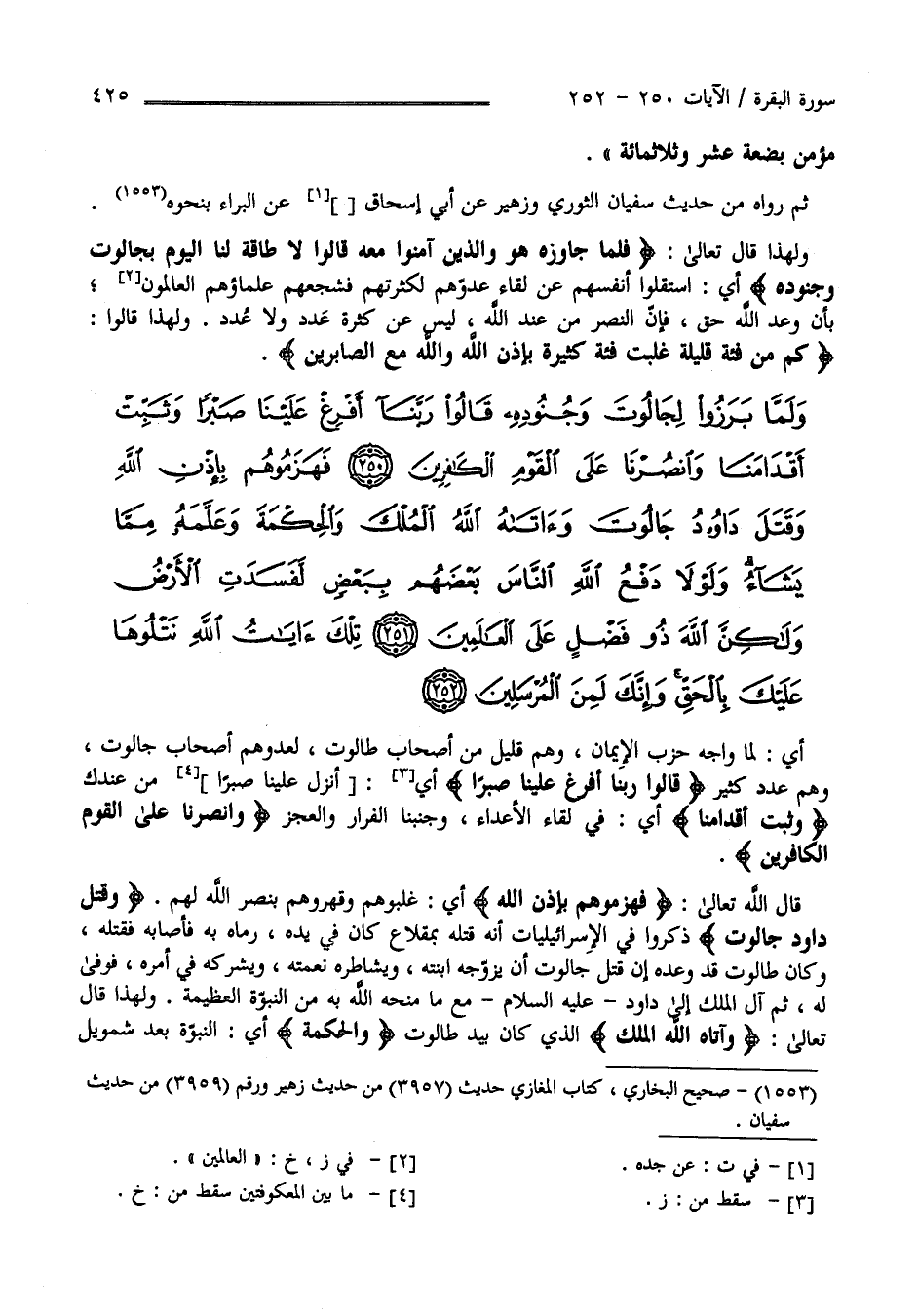 وَلَمَّا بَرَزُوا لِجَالُوتَ وَجُنُودِهِ قَالُوا رَبَّنَا أَفْرِغْ عَلَيْنَا صَبْرًا وَثَبِّتْ أَقْدَامَنَا وَانْصُرْنَا عَلَى الْقَوْمِ الْكَافِرِينَ (250)