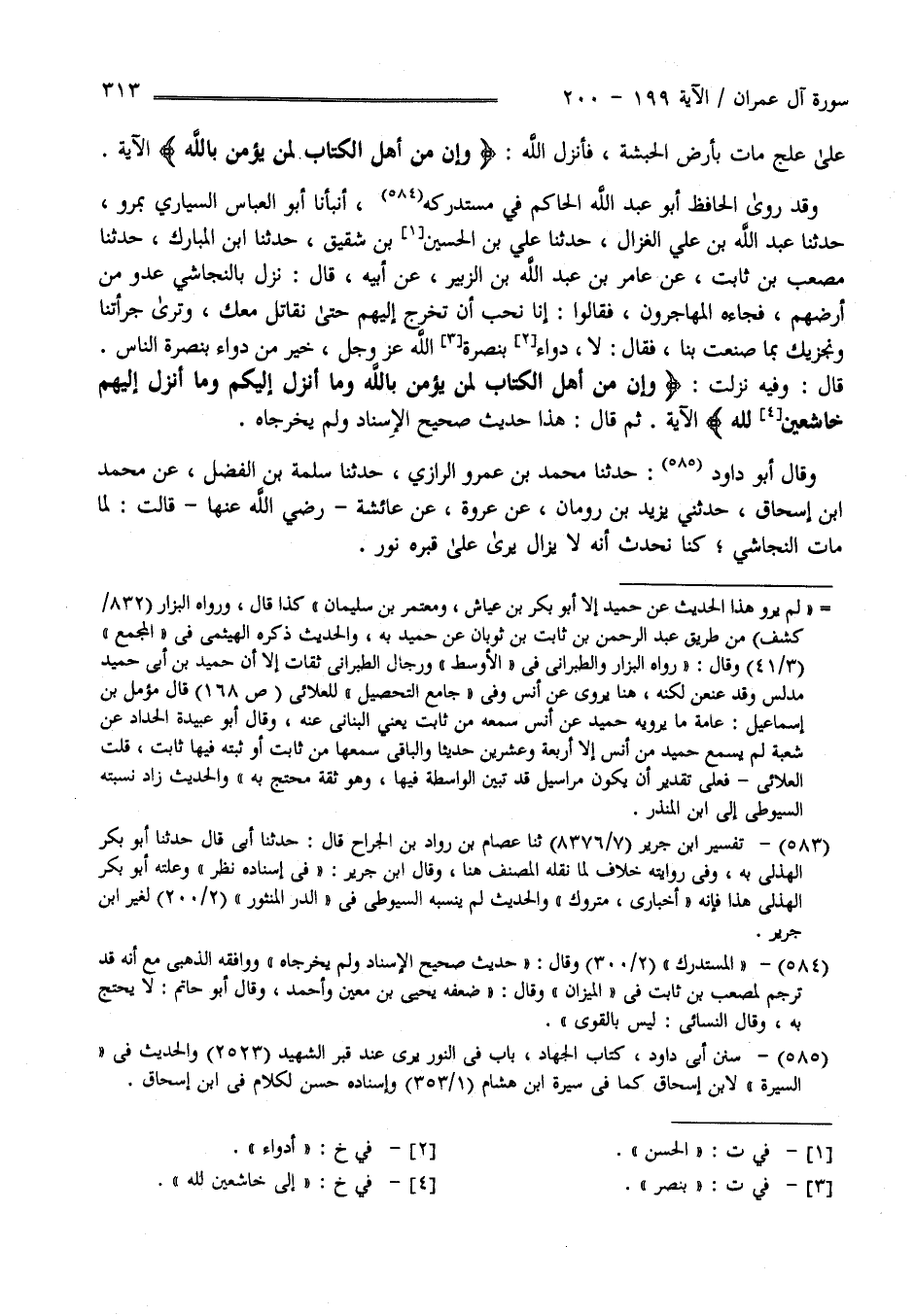 عَلَى عِلْج مَاتَ بِأَرْضِ الْحَبَشَة فَأَنْزَلَ اللَّه " وَإِنَّ مِنْ أَهْل الْكِتَاب لَمَنْ يُؤْمِن بِاَللَّهِ " الْآيَة .