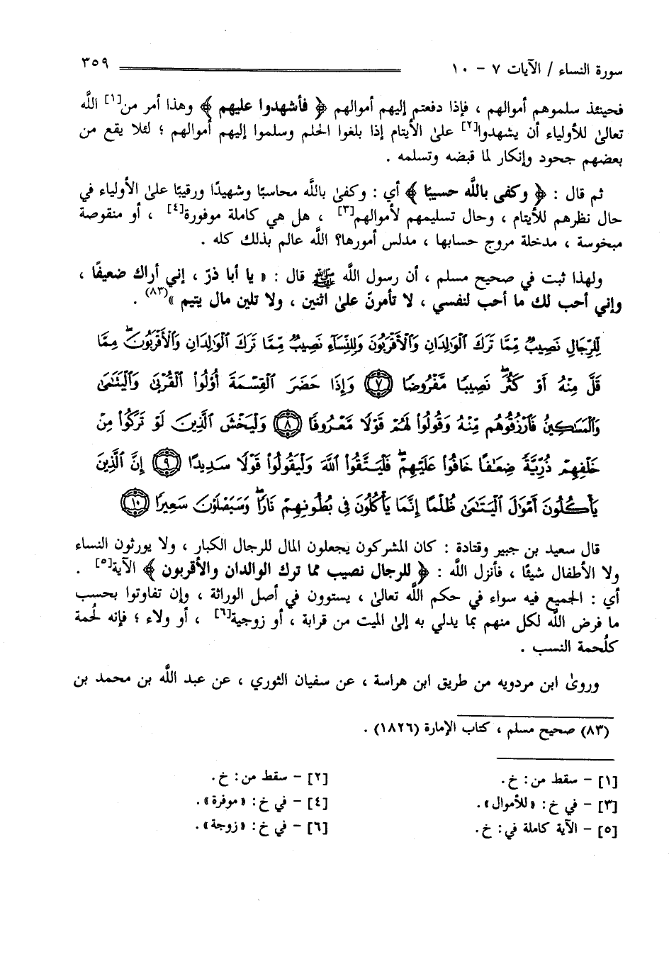 لِلرِّجَالِ نَصِيبٌ مِمَّا تَرَكَ الْوَالِدَانِ وَالْأَقْرَبُونَ وَلِلنِّسَاءِ نَصِيبٌ مِمَّا تَرَكَ الْوَالِدَانِ وَالْأَقْرَبُونَ مِمَّا قَلَّ مِنْهُ أَوْ كَثُرَ نَصِيبًا مَفْرُوضًا (7)