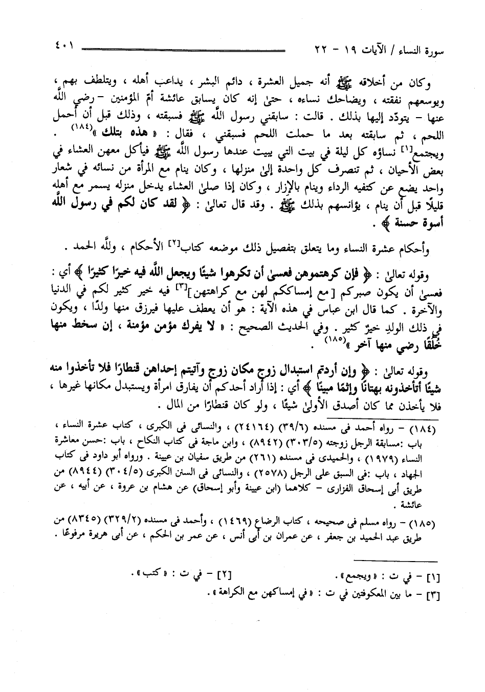 وَقَوْله تَعَالَى " وَإِنْ أَرَدْتُمْ اِسْتِبْدَال زَوْج مَكَان زَوْج وَآتَيْتُمْ إِحْدَاهُنَّ قِنْطَارًا فَلَا تَأْخُذُوا مِنْهُ شَيْئًا أَتَأْخُذُونَهُ بُهْتَانًا وَإِثْمًا مُبِينًا " أَيْ إِذَا أَرَادَ أَحَدكُمْ أَنْ يُفَارِق اِمْرَأَة وَيَسْتَبْدِل مَكَانهَا غَيْرهَا فَلَا يَأْخُذ مِمَّا كَانَ أَصْدَقَ الْأُولَى شَيْئًا وَلَوْ كَانَ قِنْطَارًا مِنْ مَال