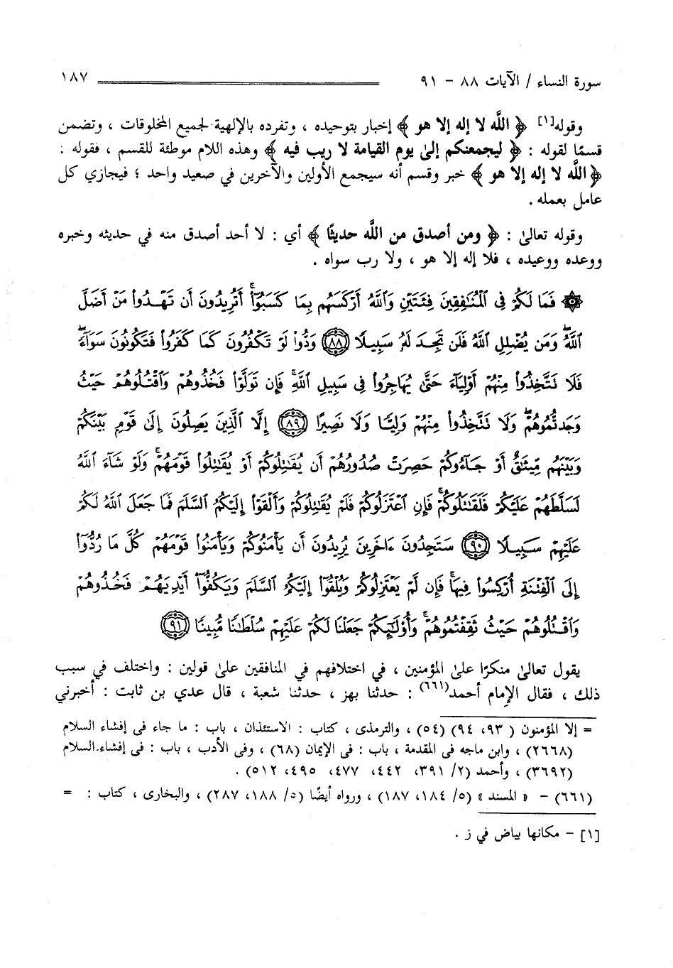 فَمَا لَكُمْ فِي الْمُنَافِقِينَ فِئَتَيْنِ وَاللَّهُ أَرْكَسَهُمْ بِمَا كَسَبُوا أَتُرِيدُونَ أَنْ تَهْدُوا مَنْ أَضَلَّ اللَّهُ وَمَنْ يُضْلِلِ اللَّهُ فَلَنْ تَجِدَ لَهُ سَبِيلًا