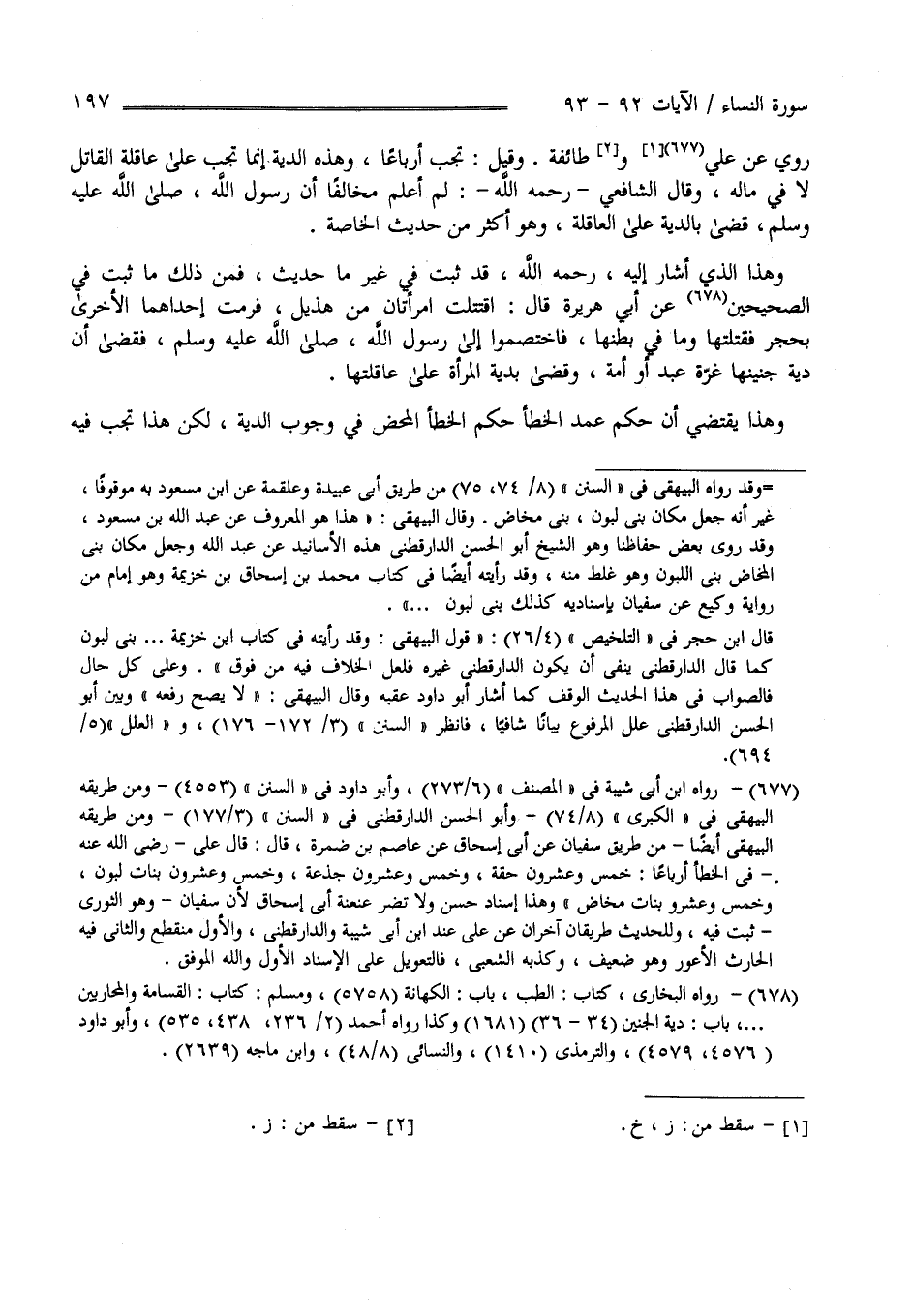 رُوِيَ عَنْ عَلِيّ وَطَائِفَة وَقِيلَ تَجِب أَرْبَاعًا وَهَذِهِ الدِّيَة إِنَّمَا تَجِب عَلَى عَاقِلَة الْقَاتِل لَا فِي مَاله قَالَ الشَّافِعِيّ رَحِمَهُ اللَّه لَمْ أَعْلَم مُخَالِفًا أَنَّ رَسُول اللَّه صَلَّى اللَّه عَلَيْهِ وَسَلَّمَ قَضَى بِالدِّيَةِ عَلَى الْعَاقِلَة وَهُوَ أَكْثَر مِنْ حَدِيث الْخَاصَّة .