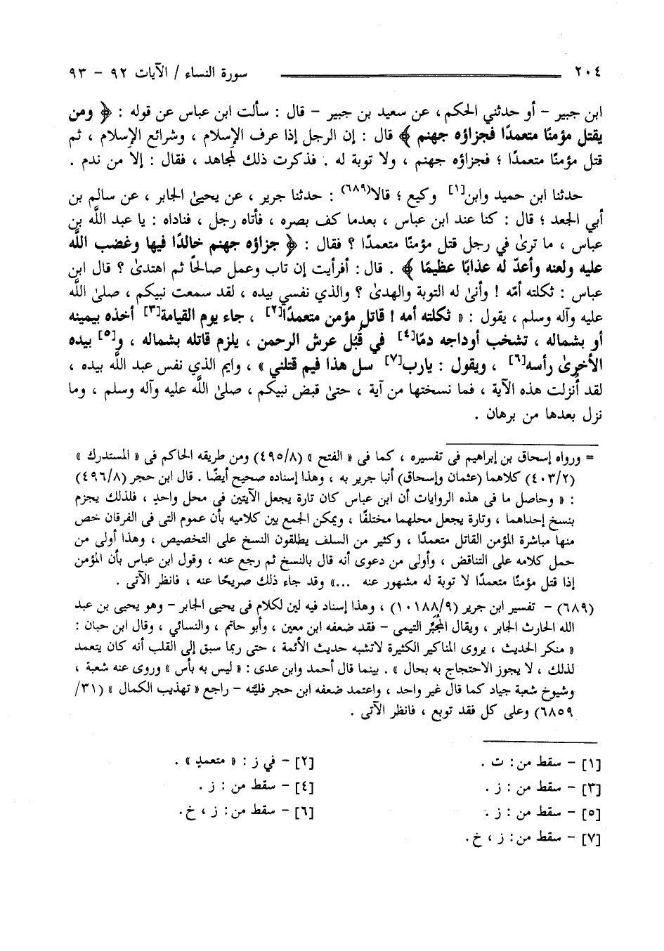وَمَنْ يَقْتُلْ مُؤْمِنًا مُتَعَمِّدًا فَجَزَاؤُهُ جَهَنَّمُ خَالِدًا فِيهَا وَغَضِبَ اللَّهُ عَلَيْهِ وَلَعَنَهُ وَأَعَدَّ لَهُ عَذَابًا عَظِيمًا (93)