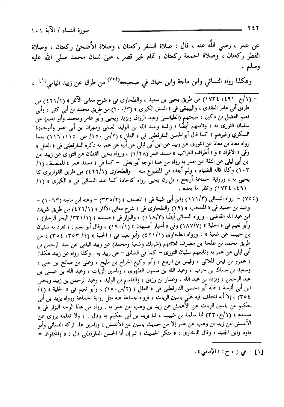 عَنْ عُمَر رَضِيَ اللَّه عَنْهُ قَالَ : صَلَاة السَّفَر رَكْعَتَانِ وَصَلَاة الْأَضْحَى رَكْعَتَانِ وَصَلَاة الْفِطْر رَكْعَتَانِ وَصَلَاة الْجُمُعَة رَكْعَتَانِ تَمَام غَيْر قَصْر عَلَى لِسَان مُحَمَّد صَلَّى اللَّه عَلَيْهِ وَسَلَّمَ.
