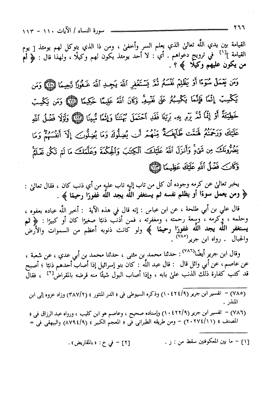 وَمَنْ يَعْمَلْ سُوءًا أَوْ يَظْلِمْ نَفْسَهُ ثُمَّ يَسْتَغْفِرِ اللَّهَ يَجِدِ اللَّهَ غَفُورًا رَحِيمًا (110)