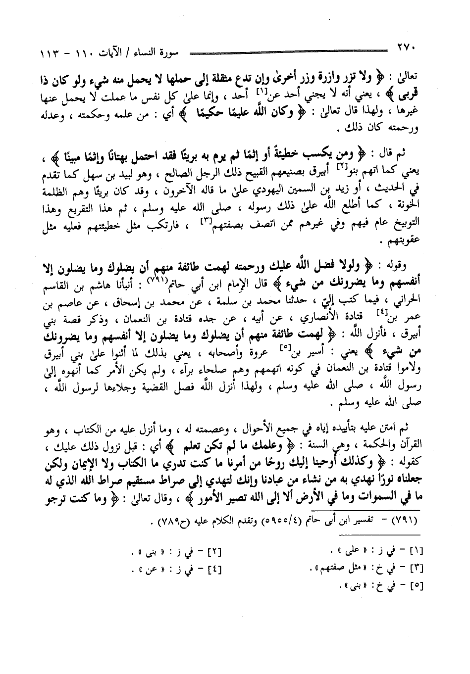 وَلَوْلَا فَضْلُ اللَّهِ عَلَيْكَ وَرَحْمَتُهُ لَهَمَّتْ طَائِفَةٌ مِنْهُمْ أَنْ يُضِلُّوكَ وَمَا يُضِلُّونَ إِلَّا أَنْفُسَهُمْ وَمَا يَضُرُّونَكَ مِنْ شَيْءٍ وَأَنْزَلَ اللَّهُ عَلَيْكَ الْكِتَابَ وَالْحِكْمَةَ وَعَلَّمَكَ مَا لَمْ تَكُنْ تَعْلَمُ وَكَانَ فَضْلُ اللَّهِ عَلَيْكَ عَظِيمًا (113)
