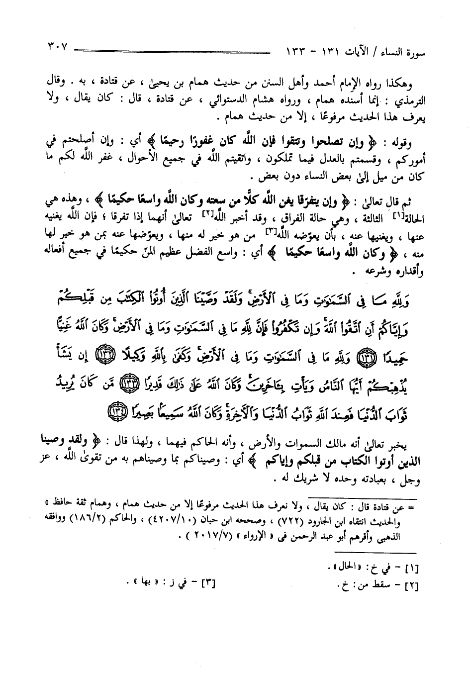 وَلِلَّهِ مَا فِي السَّمَاوَاتِ وَمَا فِي الْأَرْضِ وَلَقَدْ وَصَّيْنَا الَّذِينَ أُوتُوا الْكِتَابَ مِنْ قَبْلِكُمْ وَإِيَّاكُمْ أَنِ اتَّقُوا اللَّهَ وَإِنْ تَكْفُرُوا فَإِنَّ لِلَّهِ مَا فِي السَّمَاوَاتِ وَمَا فِي الْأَرْضِ وَكَانَ اللَّهُ غَنِيًّا حَمِيدًا (131)
