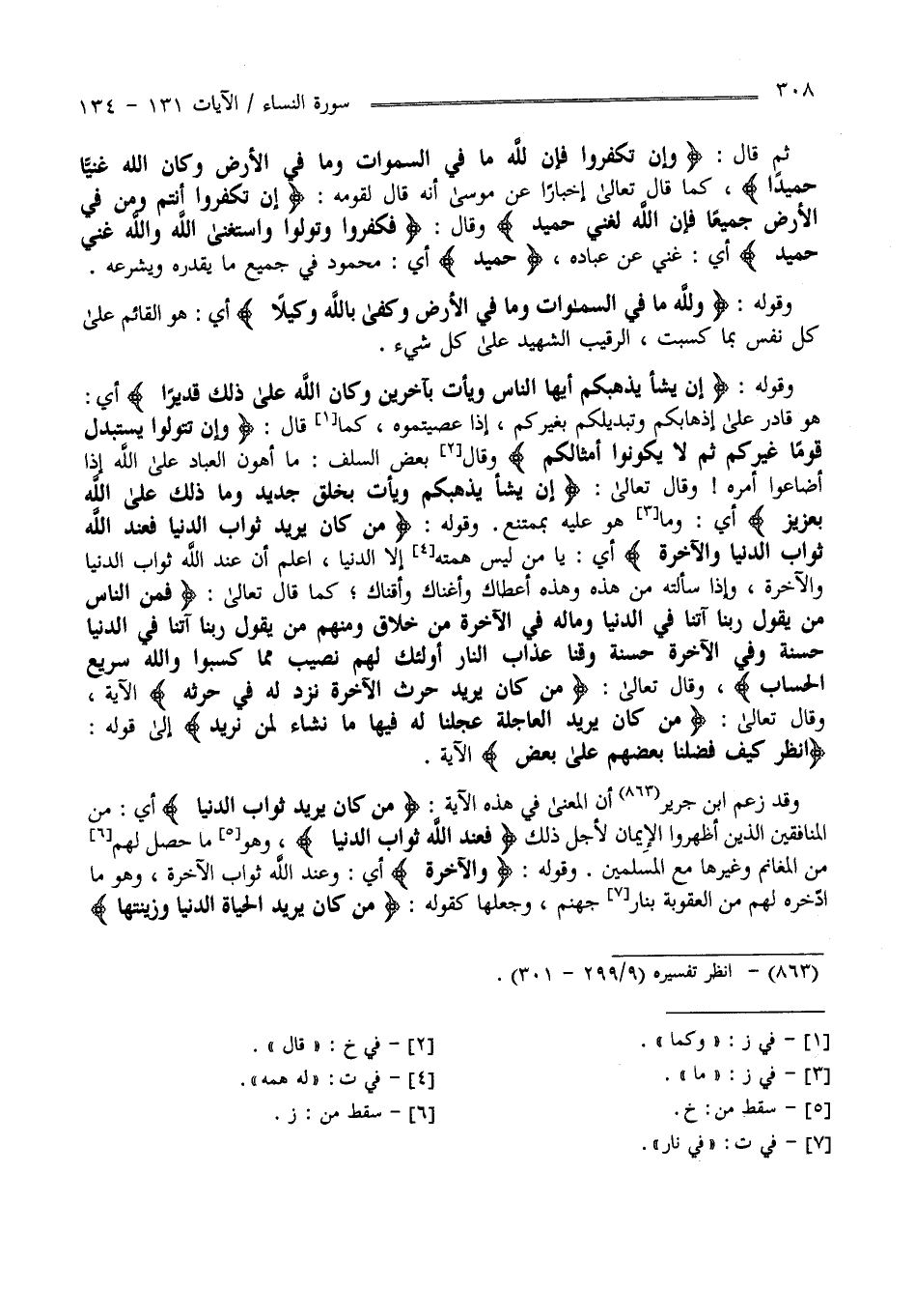ثُمَّ قَالَ وَإِنْ تَكْفُرُوا فَإِنَّ لِلَّهِ مَا فِي السَّمَوَات وَمَا فِي الْأَرْض " الْآيَة كَمَا قَالَ تَعَالَى إِخْبَارًا عَنْ مُوسَى أَنَّهُ قَالَ لِقَوْمِهِ " إِنْ تَكْفُرُوا أَنْتُمْ وَمَنْ فِي الْأَرْض جَمِيعًا فَإِنَّ اللَّه لَغَنِيّ حَمِيد " وَقَالَ " فَكَفَرُوا وَتَوَلَّوْا وَاسْتَغْنَى اللَّه وَاَللَّه غَنِيّ حَمِيد " أَيْ غَنِيّ عَنْ عِبَاده " حَمِيد " أَيْ مَحْمُود فِي جَمِيع مَا يُقَدِّرهُ وَيُشَرِّعهُ.