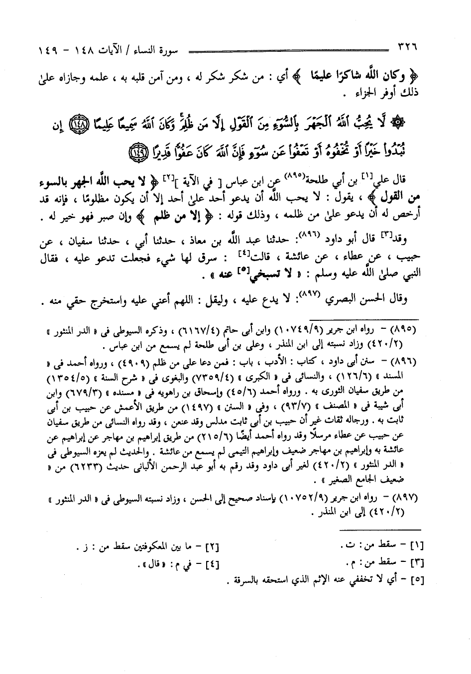 لَا يُحِبُّ اللَّهُ الْجَهْرَ بِالسُّوءِ مِنَ الْقَوْلِ إِلَّا مَنْ ظُلِمَ وَكَانَ اللَّهُ سَمِيعًا عَلِيمًا (148)