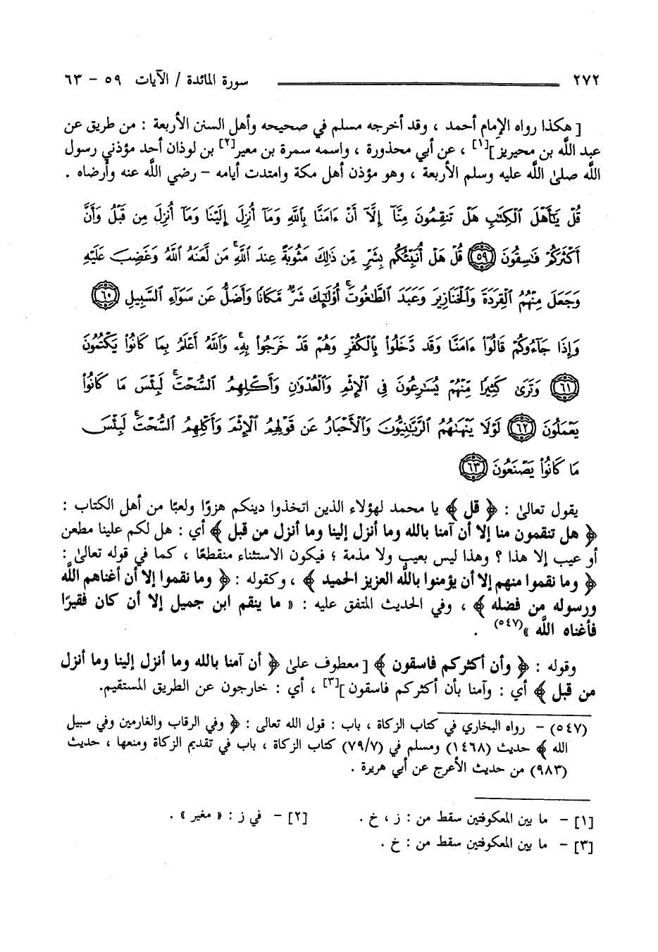 قُلْ يَا أَهْلَ الْكِتَابِ هَلْ تَنْقِمُونَ مِنَّا إِلَّا أَنْ آَمَنَّا بِاللَّهِ وَمَا أُنْزِلَ إِلَيْنَا وَمَا أُنْزِلَ مِنْ قَبْلُ وَأَنَّ أَكْثَرَكُمْ فَاسِقُونَ (59)