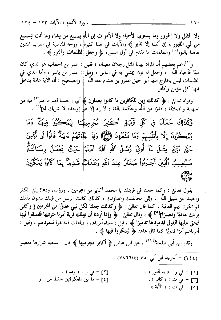 وَكَذَلِكَ جَعَلْنَا فِي كُلِّ قَرْيَةٍ أَكَابِرَ مُجْرِمِيهَا لِيَمْكُرُوا فِيهَا وَمَا يَمْكُرُونَ إِلَّا بِأَنْفُسِهِمْ وَمَا يَشْعُرُونَ (123)