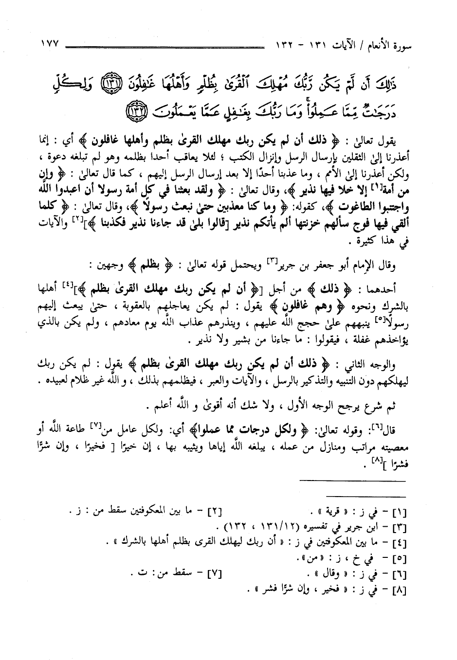 ذَلِكَ أَنْ لَمْ يَكُنْ رَبُّكَ مُهْلِكَ الْقُرَى بِظُلْمٍ وَأَهْلُهَا غَافِلُونَ (131)