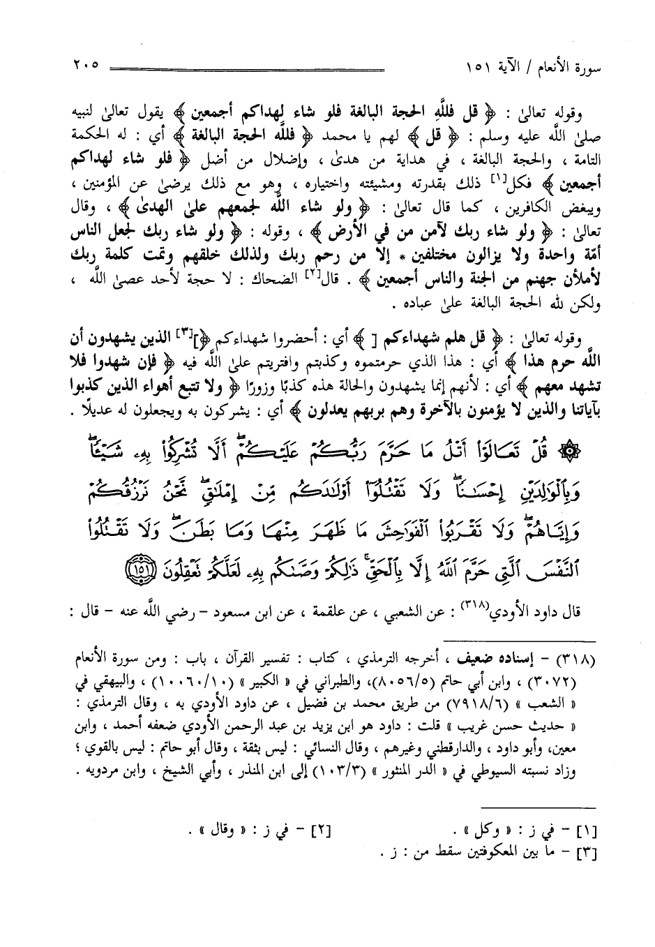 قَالَ دَاوُد الْأَوْدِيّ عَنْ الشَّعْبِيّ عَنْ عَلْقَمَة عَنْ اِبْن مَسْعُود رَضِيَ اللَّه عَنْهُ قَالَ :