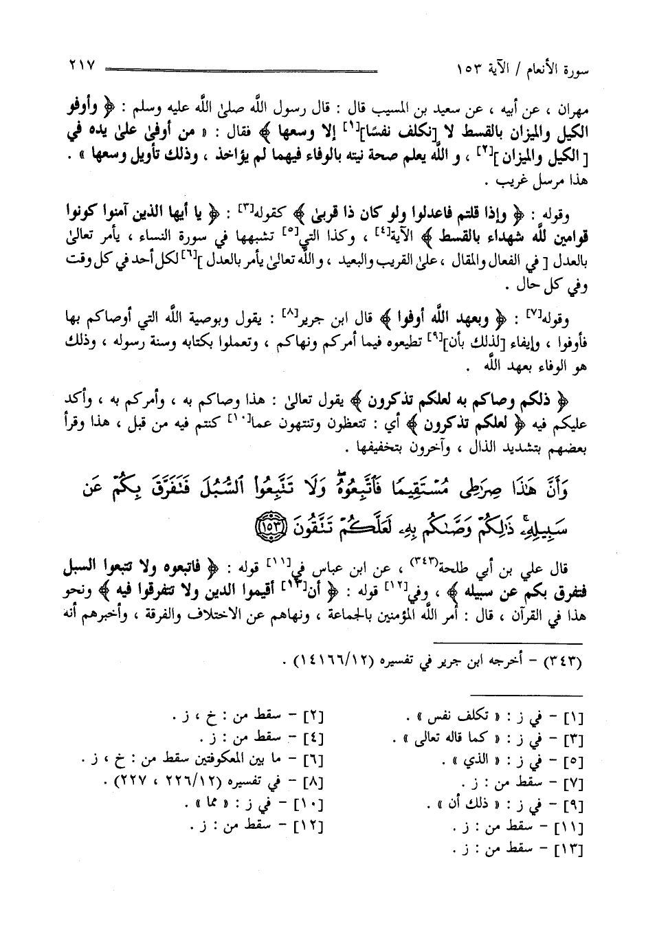 وَأَنَّ هَذَا صِرَاطِي مُسْتَقِيمًا فَاتَّبِعُوهُ وَلَا تَتَّبِعُوا السُّبُلَ فَتَفَرَّقَ بِكُمْ عَنْ سَبِيلِهِ ذَلِكُمْ وَصَّاكُمْ بِهِ لَعَلَّكُمْ تَتَّقُونَ (153)