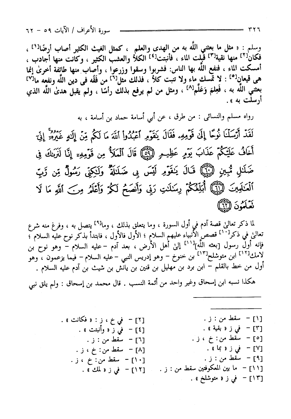 لَقَدْ أَرْسَلْنَا نُوحًا إِلَى قَوْمِهِ فَقَالَ يَا قَوْمِ اعْبُدُوا اللَّهَ مَا لَكُمْ مِنْ إِلَهٍ غَيْرُهُ إِنِّي أَخَافُ عَلَيْكُمْ عَذَابَ يَوْمٍ عَظِيمٍ (59)