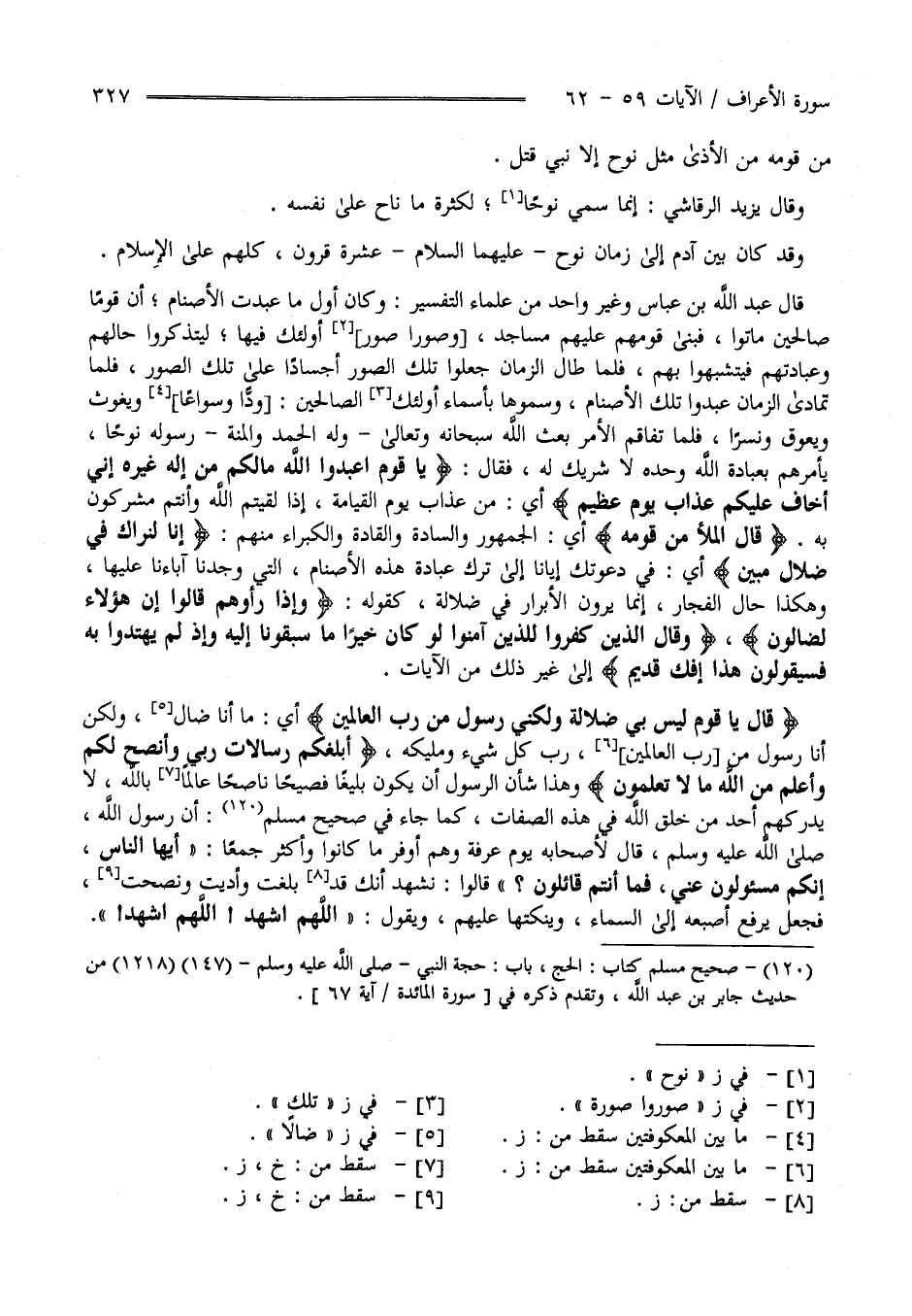 " أُبَلِّغكُمْ رِسَالَات رَبِّي وَأَنْصَح لَكُمْ وَأَعْلَم مِنْ اللَّه مَا لَا تَعْلَمُونَ " وَهَذَا شَأْن الرَّسُول أَنْ يَكُون مُبَلِّغًا فَصِيحًا نَاصِحًا عَالِمًا بِاَللَّهِ لَا يُدْرِكهُمْ أَحَد مِنْ خَلْق اللَّه فِي هَذِهِ الصِّفَات كَمَا جَاءَ فِي صَحِيح مُسْلِم أَنَّ رَسُول اللَّه صَلَّى اللَّه عَلَيْهِ وَسَلَّمَ قَالَ لِأَصْحَابِهِ يَوْم عَرَفَة وَهُمْ أَوْفَر مَا كَانُوا وَأَكْثَر جَمْعًا" أَيّهَا النَّاس إِنَّكُمْ مَسْئُولُونَ عَنِّي فَمَا أَنْتُمْ قَائِلُونَ ؟ " قَالُوا نَشْهَد أَنَّك قَدْ بَلَّغْت وَأَدَّيْت وَنَصَحْت فَجَعَلَ يَرْفَع أُصْبُعه إِلَى السَّمَاء وَيُنَكِّسهَا عَلَيْهِمْ وَيَقُول" اللَّهُمَّ اِشْهَدْ اللَّهُمَّ اِشْهَدْ " .