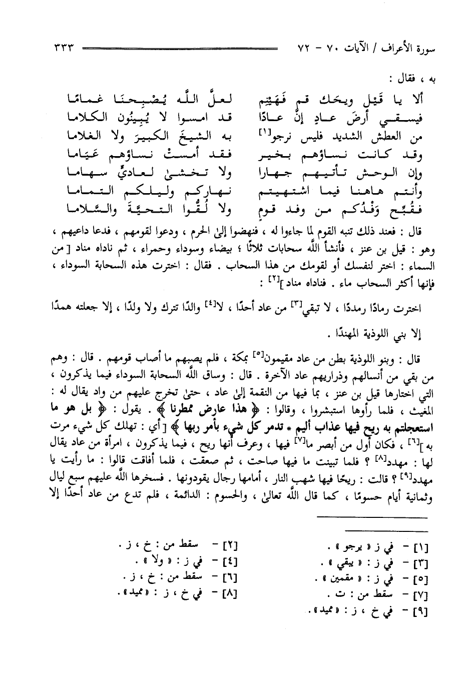 فَيَسْقِي أَرْض عَاد إِنَّ عَادًا ... قَدْ أَمْسَوْا لَا يَبِينُونَ الْكَلَامَا