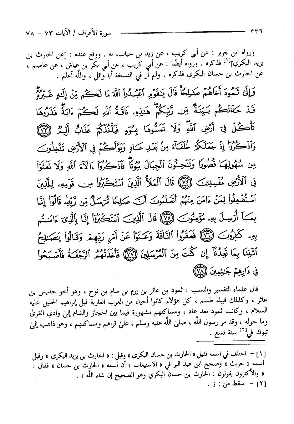 وَإِلَى ثَمُودَ أَخَاهُمْ صَالِحًا قَالَ يَا قَوْمِ اعْبُدُوا اللَّهَ مَا لَكُمْ مِنْ إِلَهٍ غَيْرُهُ قَدْ جَاءَتْكُمْ بَيِّنَةٌ مِنْ رَبِّكُمْ هَذِهِ نَاقَةُ اللَّهِ لَكُمْ آَيَةً فَذَرُوهَا تَأْكُلْ فِي أَرْضِ اللَّهِ وَلَا تَمَسُّوهَا بِسُوءٍ فَيَأْخُذَكُمْ عَذَابٌ أَلِيمٌ (73)