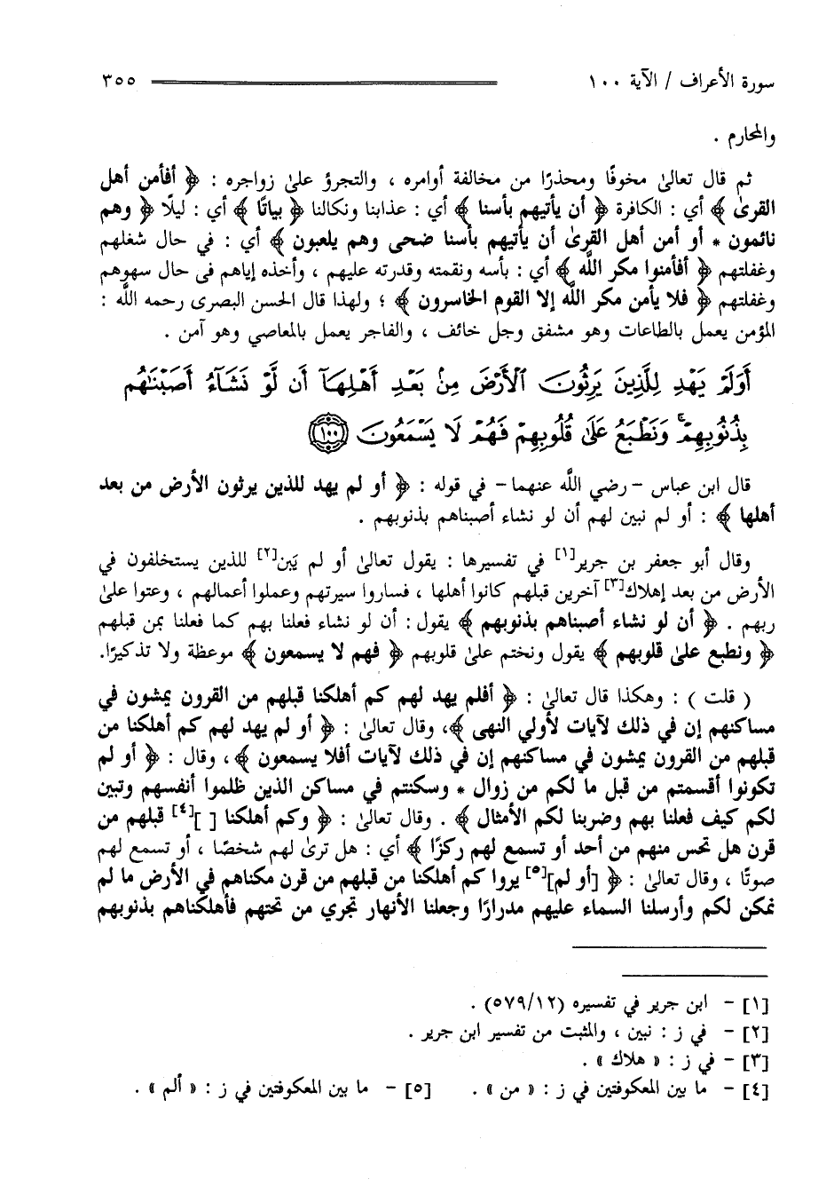 أَوَلَمْ يَهْدِ لِلَّذِينَ يَرِثُونَ الْأَرْضَ مِنْ بَعْدِ أَهْلِهَا أَنْ لَوْ نَشَاءُ أَصَبْنَاهُمْ بِذُنُوبِهِمْ وَنَطْبَعُ عَلَى قُلُوبِهِمْ فَهُمْ لَا يَسْمَعُونَ (100)