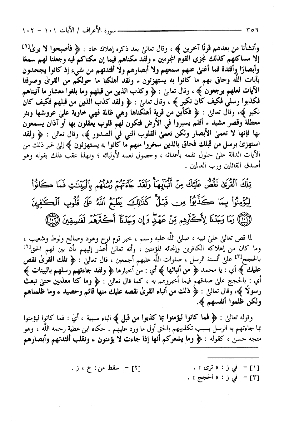 تِلْكَ الْقُرَى نَقُصُّ عَلَيْكَ مِنْ أَنْبَائِهَا وَلَقَدْ جَاءَتْهُمْ رُسُلُهُمْ بِالْبَيِّنَاتِ فَمَا كَانُوا لِيُؤْمِنُوا بِمَا كَذَّبُوا مِنْ قَبْلُ كَذَلِكَ يَطْبَعُ اللَّهُ عَلَى قُلُوبِ الْكَافِرِينَ (101)