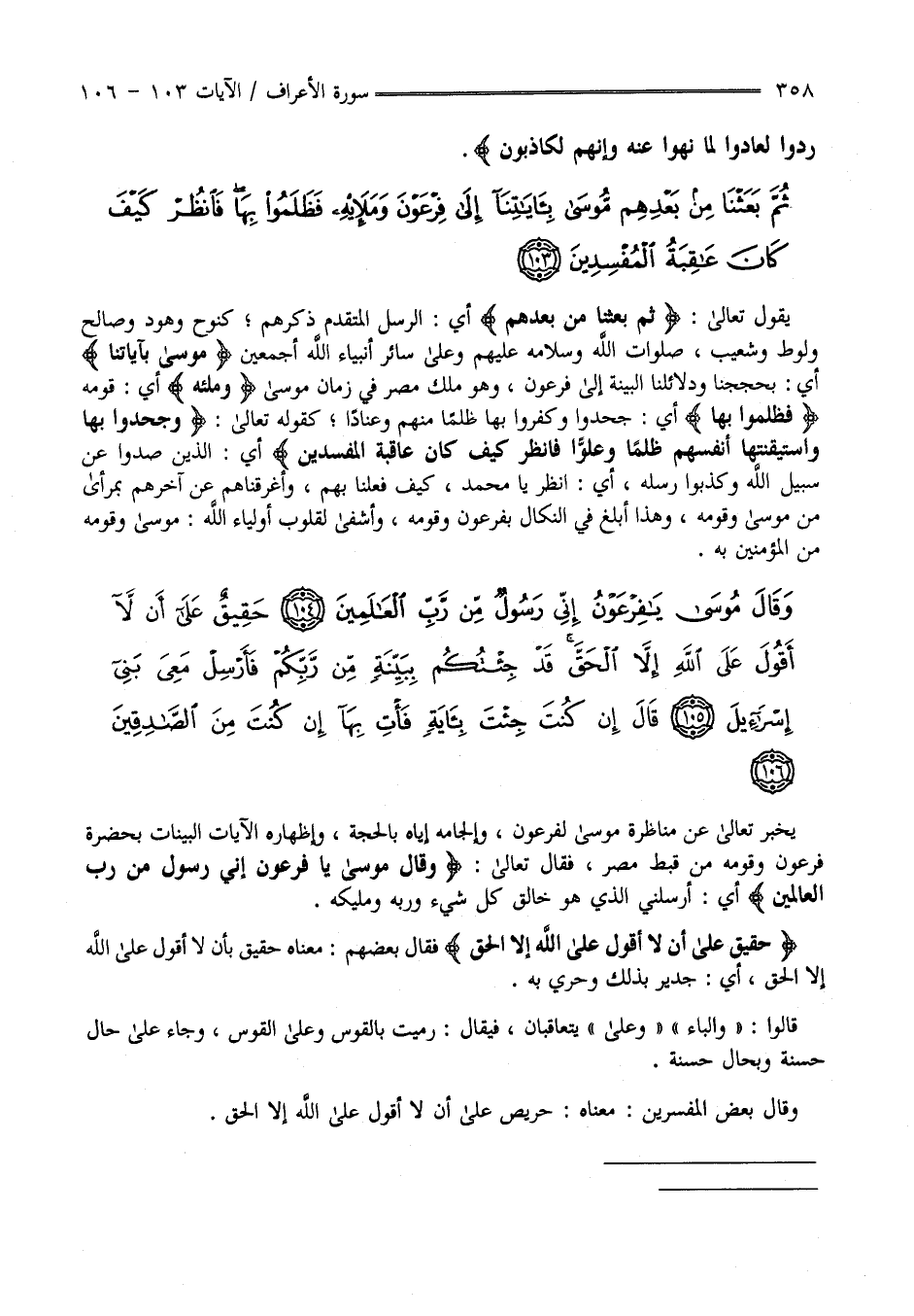 ثُمَّ بَعَثْنَا مِنْ بَعْدِهِمْ مُوسَى بِآَيَاتِنَا إِلَى فِرْعَوْنَ وَمَلَئِهِ فَظَلَمُوا بِهَا فَانْظُرْ كَيْفَ كَانَ عَاقِبَةُ الْمُفْسِدِينَ (103)