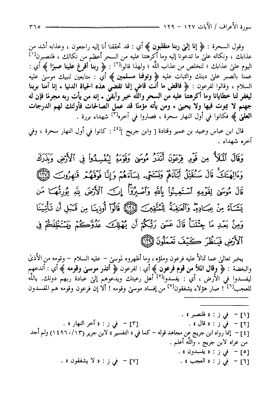قَالُوا " رَبّنَا أَفْرِغْ عَلَيْنَا صَبْرًا " أَيْ عُمَّنَا بِالصَّبْرِ عَلَى دِينك وَالثَّبَات عَلَيْهِ " وَتَوَفَّنَا مُسْلِمِينَ " أَيْ مُتَابِعِينَ لِنَبِيِّك مُوسَى عَلَيْهِ السَّلَام وَقَالُوا لِفِرْعَوْن" فَاقْضِ مَا أَنْتَ قَاضٍ إِنَّمَا تَقْضِي هَذِهِ الْحَيَاة الدُّنْيَا إِنَّا آمَنَّا بِرَبِّنَا لِيَغْفِر لَنَا خَطَايَانَا وَمَا أَكْرَهْتنَا عَلَيْهِ مِنْ السِّحْر وَاَللَّه خَيْر وَأَبْقَى إِنَّهُ مَنْ يَأْتِ رَبّه مُجْرِمًا فَإِنَّ لَهُ جَهَنَّم لَا يَمُوت فِيهَا وَلَا يَحْيَى وَمَنْ يَأْتِهِ مُؤْمِنًا قَدْ عَمِلَ الصَّالِحَات فَأُولَئِكَ لَهُمْ الدَّرَجَات الْعُلَى " فَكَانُوا فِي أَوَّل النَّهَار سَحَرَة فَصَارُوا فِي آخِره شُهَدَاء بَرَرَة قَالَ اِبْن عَبَّاس وَعُبَيْد بْن عُمَيْر وَقَتَادَة وَابْن جُرَيْج كَانُوا فِي أَوَّل النَّهَار سَحَرَة وَفِي آخِره شُهَدَاء .
