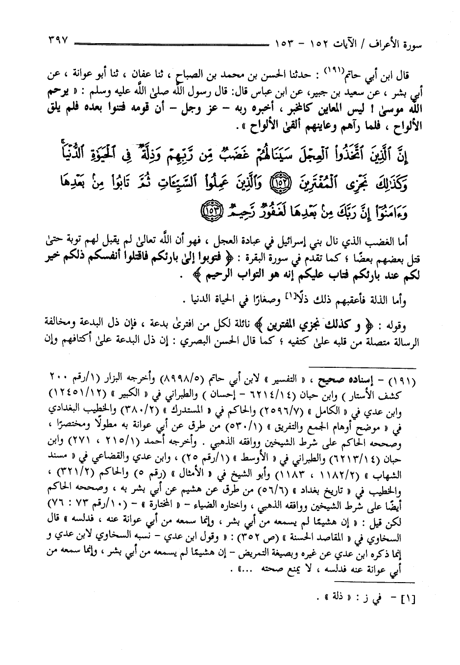 إِنَّ الَّذِينَ اتَّخَذُوا الْعِجْلَ سَيَنَالُهُمْ غَضَبٌ مِنْ رَبِّهِمْ وَذِلَّةٌ فِي الْحَيَاةِ الدُّنْيَا وَكَذَلِكَ نَجْزِي الْمُفْتَرِينَ (152)