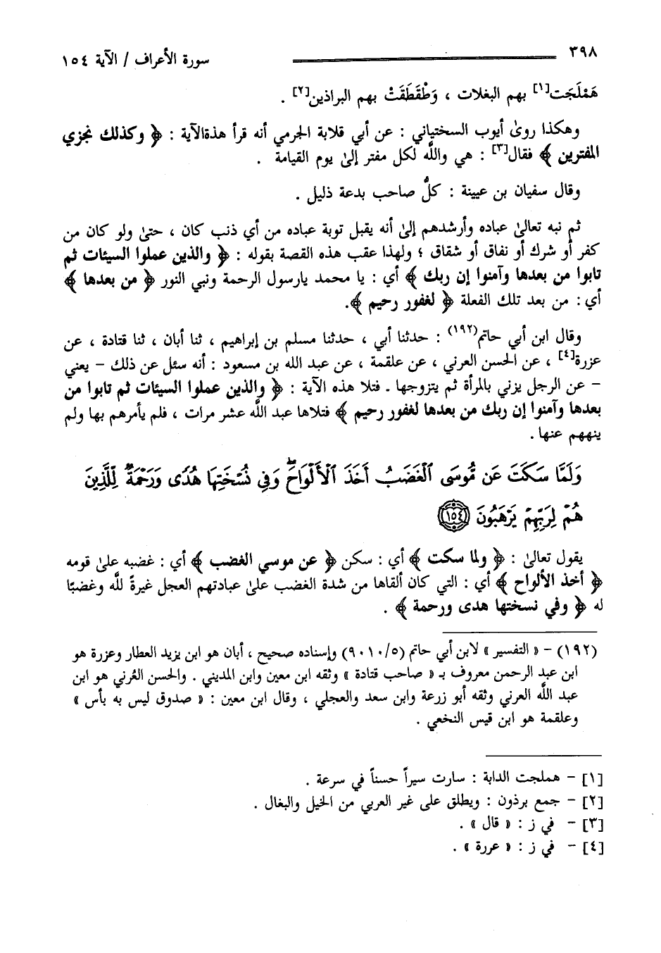 وَلَمَّا سَكَتَ عَنْ مُوسَى الْغَضَبُ أَخَذَ الْأَلْوَاحَ وَفِي نُسْخَتِهَا هُدًى وَرَحْمَةٌ لِلَّذِينَ هُمْ لِرَبِّهِمْ يَرْهَبُونَ (154)