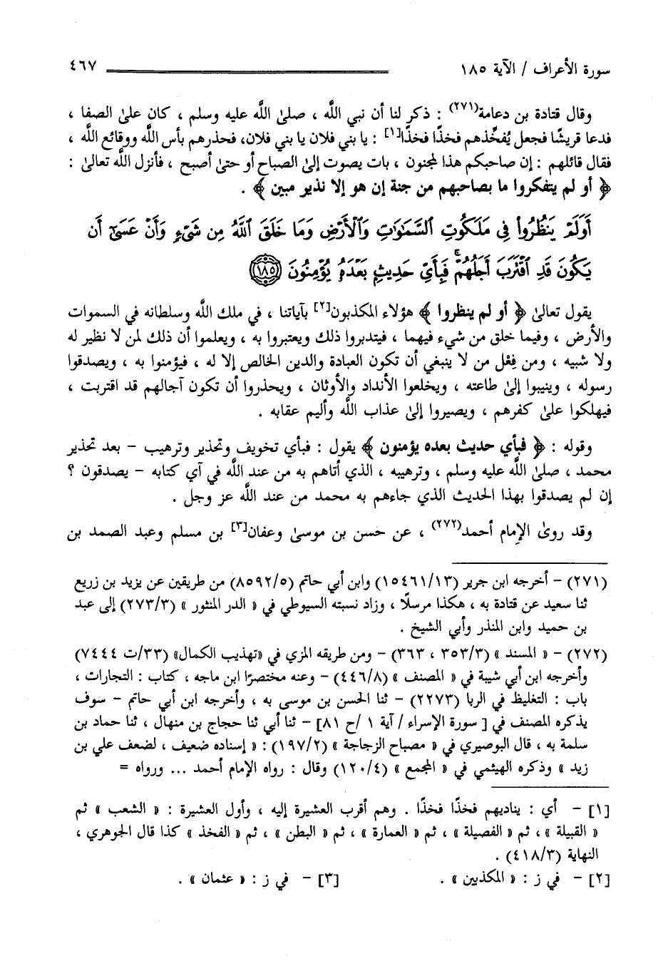 أَوَلَمْ يَنْظُرُوا فِي مَلَكُوتِ السَّمَاوَاتِ وَالْأَرْضِ وَمَا خَلَقَ اللَّهُ مِنْ شَيْءٍ وَأَنْ عَسَى أَنْ يَكُونَ قَدِ اقْتَرَبَ أَجَلُهُمْ فَبِأَيِّ حَدِيثٍ بَعْدَهُ يُؤْمِنُونَ (185)