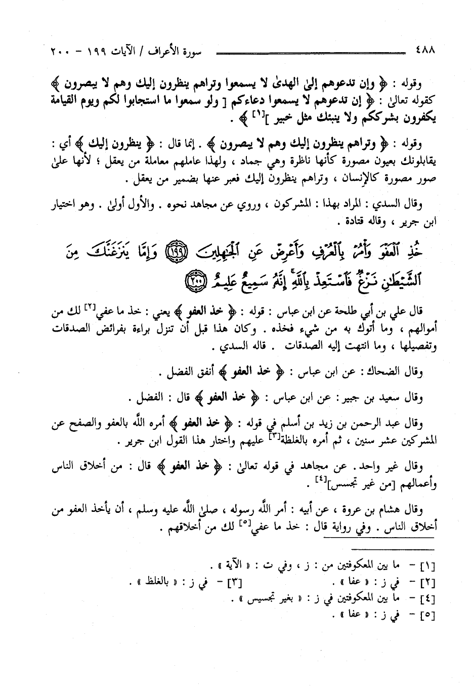 خُذِ الْعَفْوَ وَأْمُرْ بِالْعُرْفِ وَأَعْرِضْ عَنِ الْجَاهِلِينَ (199)