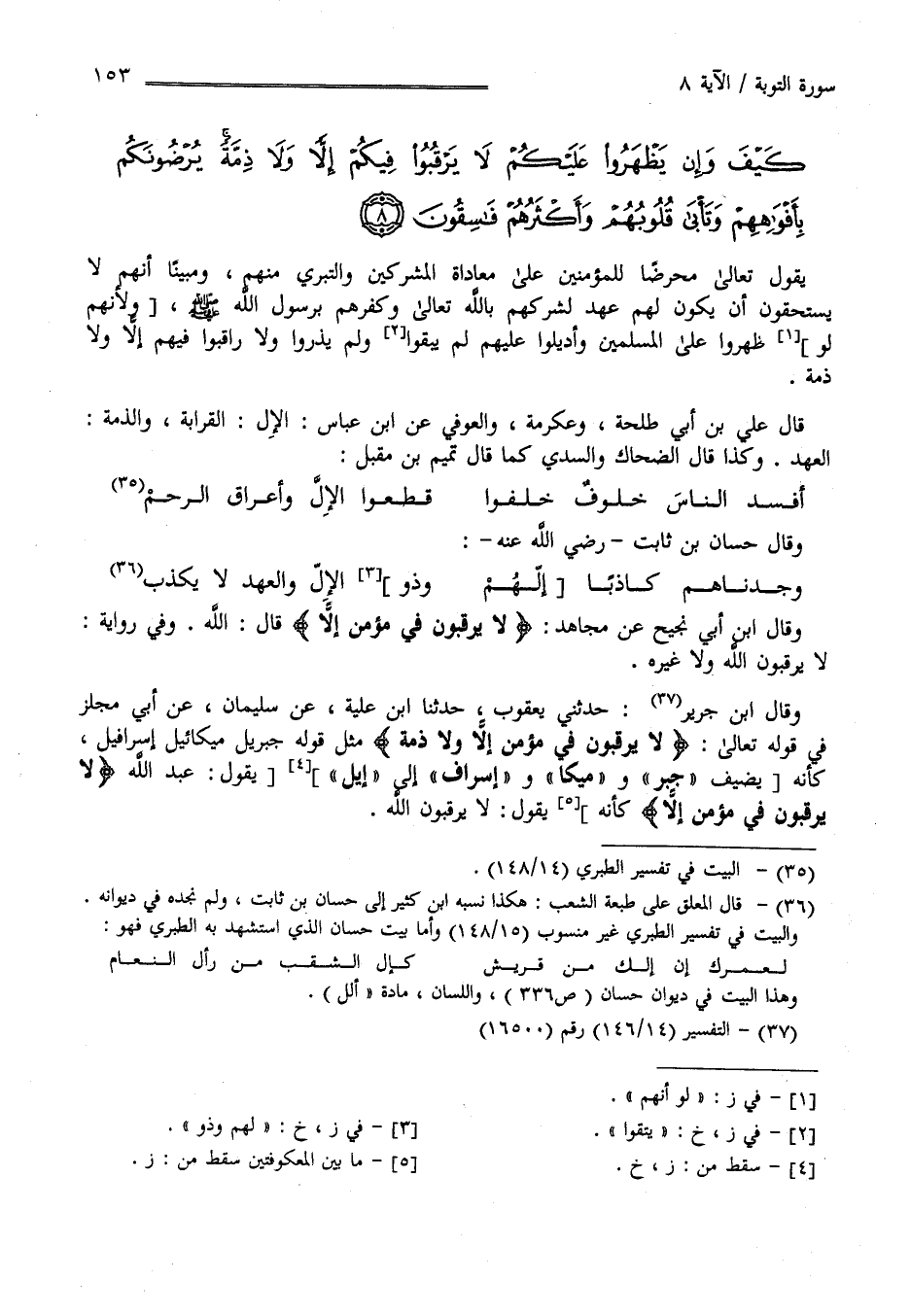 كَيْفَ وَإِنْ يَظْهَرُوا عَلَيْكُمْ لَا يَرْقُبُوا فِيكُمْ إِلًّا وَلَا ذِمَّةً يُرْضُونَكُمْ بِأَفْوَاهِهِمْ وَتَأْبَى قُلُوبُهُمْ وَأَكْثَرُهُمْ فَاسِقُونَ (8)