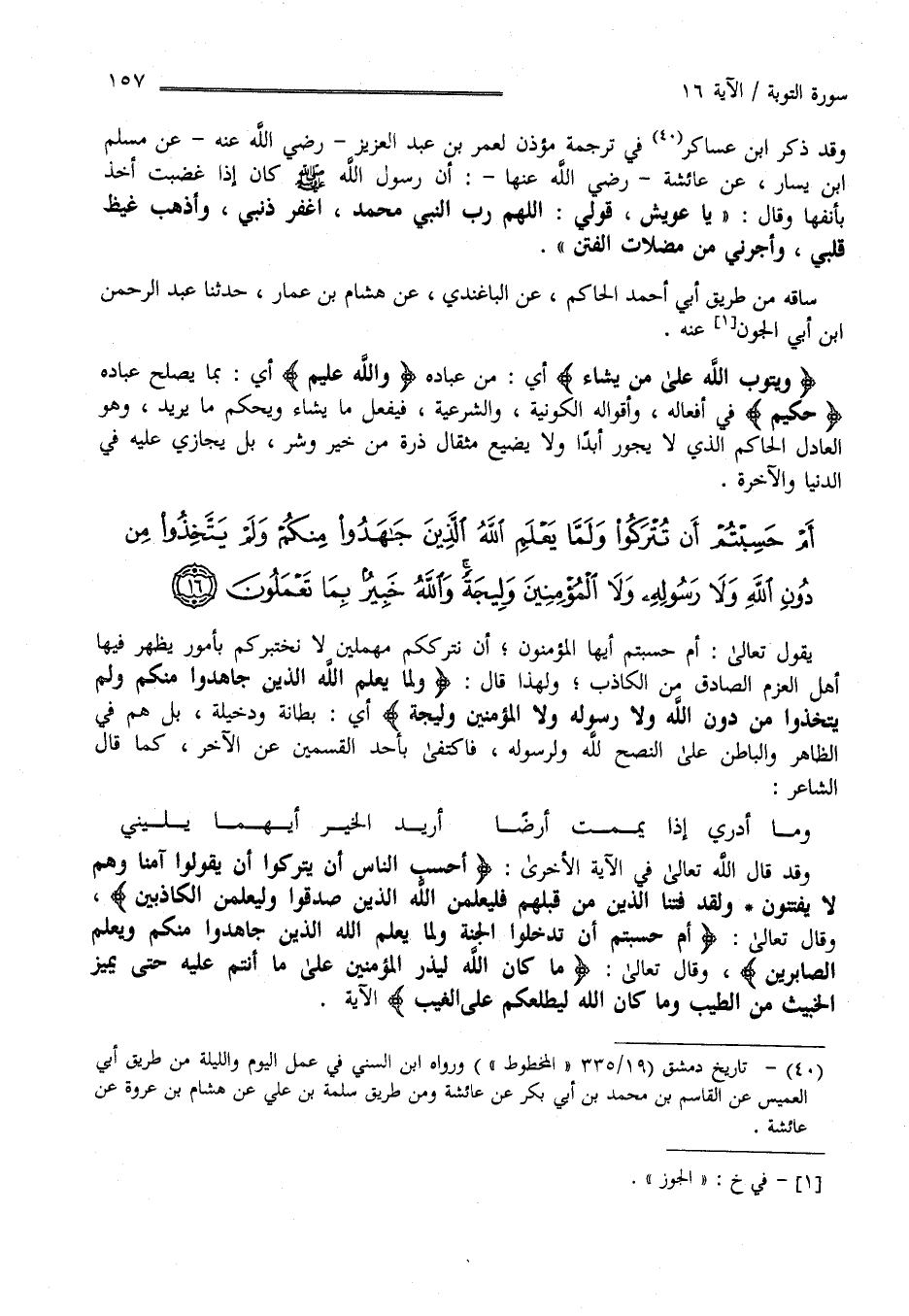 أَمْ حَسِبْتُمْ أَنْ تُتْرَكُوا وَلَمَّا يَعْلَمِ اللَّهُ الَّذِينَ جَاهَدُوا مِنْكُمْ وَلَمْ يَتَّخِذُوا مِنْ دُونِ اللَّهِ وَلَا رَسُولِهِ وَلَا الْمُؤْمِنِينَ وَلِيجَةً وَاللَّهُ خَبِيرٌ بِمَا تَعْمَلُونَ