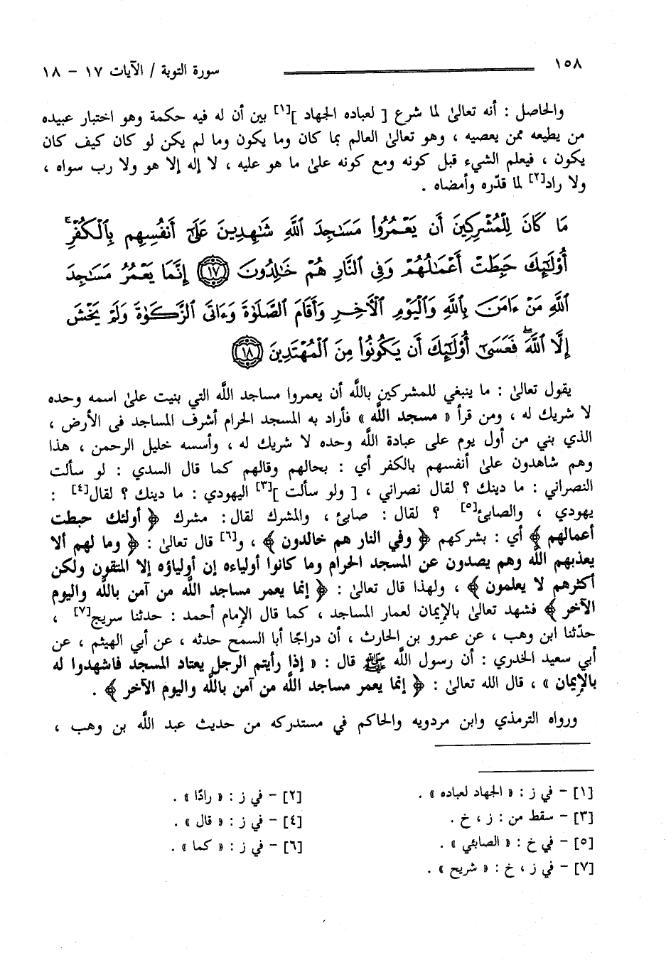 إِنَّمَا يَعْمُرُ مَسَاجِدَ اللَّهِ مَنْ آَمَنَ بِاللَّهِ وَالْيَوْمِ الْآَخِرِ وَأَقَامَ الصَّلَاةَ وَآَتَى الزَّكَاةَ وَلَمْ يَخْشَ إِلَّا اللَّهَ فَعَسَى أُولَئِكَ أَنْ يَكُونُوا مِنَ الْمُهْتَدِينَ (18)