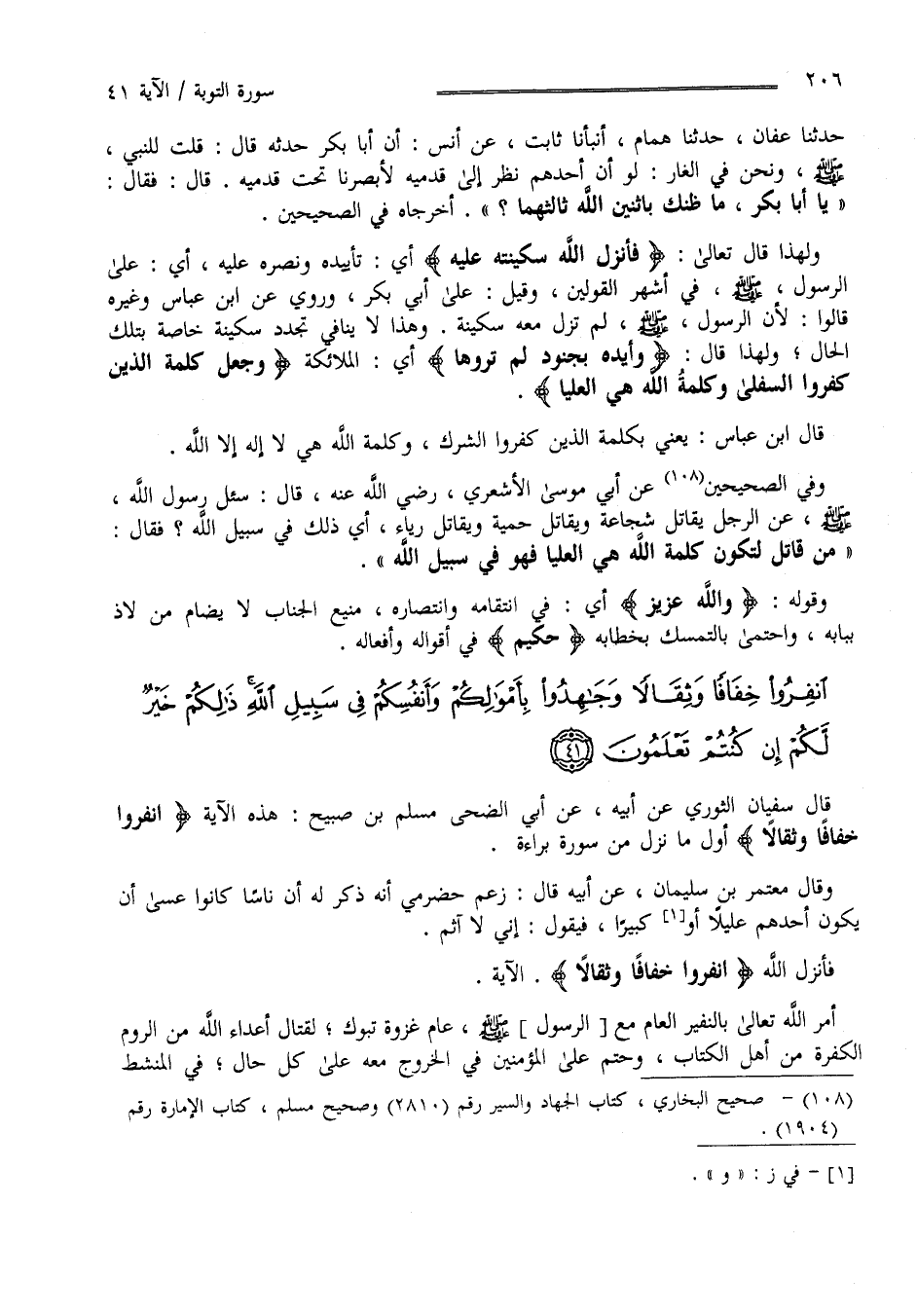 انْفِرُوا خِفَافًا وَثِقَالًا وَجَاهِدُوا بِأَمْوَالِكُمْ وَأَنْفُسِكُمْ فِي سَبِيلِ اللَّهِ ذَلِكُمْ خَيْرٌ لَكُمْ إِنْ كُنْتُمْ تَعْلَمُونَ