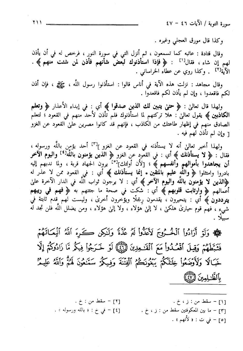 وَلَوْ أَرَادُوا الْخُرُوجَ لَأَعَدُّوا لَهُ عُدَّةً وَلَكِنْ كَرِهَ اللَّهُ انْبِعَاثَهُمْ فَثَبَّطَهُمْ وَقِيلَ اقْعُدُوا مَعَ الْقَاعِدِينَ