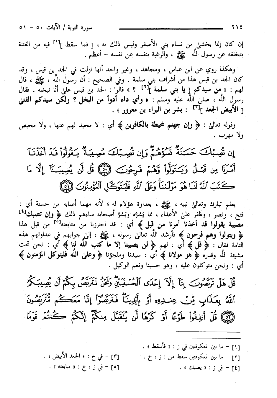 إِنْ كَانَ إِنَّمَا يَخْشَى مِنْ نِسَاء بَنِي الْأَصْفَر وَلَيْسَ ذَلِكَ بِهِ فَمَا سَقَطَ فِيهِ مِنْ الْفِتْنَة بِتَخَلُّفِهِ عَنْ رَسُول اللَّه صَلَّى اللَّه عَلَيْهِ وَسَلَّمَ وَالرَّغْبَة بِنَفْسِهِ عَنْ نَفْسه أَعْظَم وَهَكَذَا رُوِيَ عَنْ اِبْن عَبَّاس وَمُجَاهِد وَغَيْر وَاحِد أَنَّهَا نَزَلَتْ فِي الْجَدّ بْن قَيْس وَقَدْ كَانَ الْجَدّ بْن قَيْس هَذَا مِنْ أَشْرَاف بَنِي سَلَمَة .