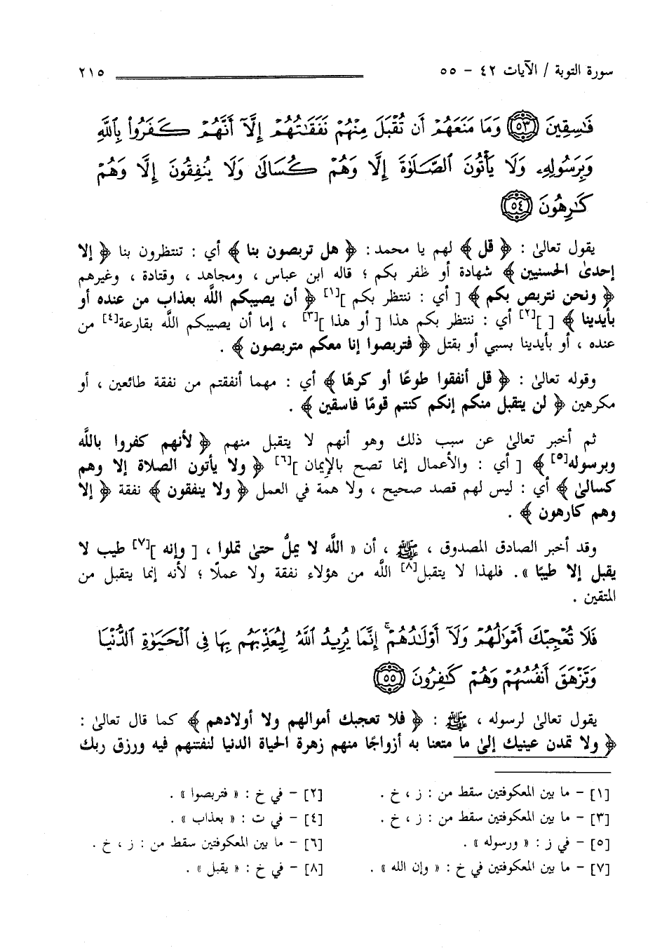 وَمَا مَنَعَهُمْ أَنْ تُقْبَلَ مِنْهُمْ نَفَقَاتُهُمْ إِلَّا أَنَّهُمْ كَفَرُوا بِاللَّهِ وَبِرَسُولِهِ وَلَا يَأْتُونَ الصَّلَاةَ إِلَّا وَهُمْ كُسَالَى وَلَا يُنْفِقُونَ إِلَّا وَهُمْ كَارِهُونَ