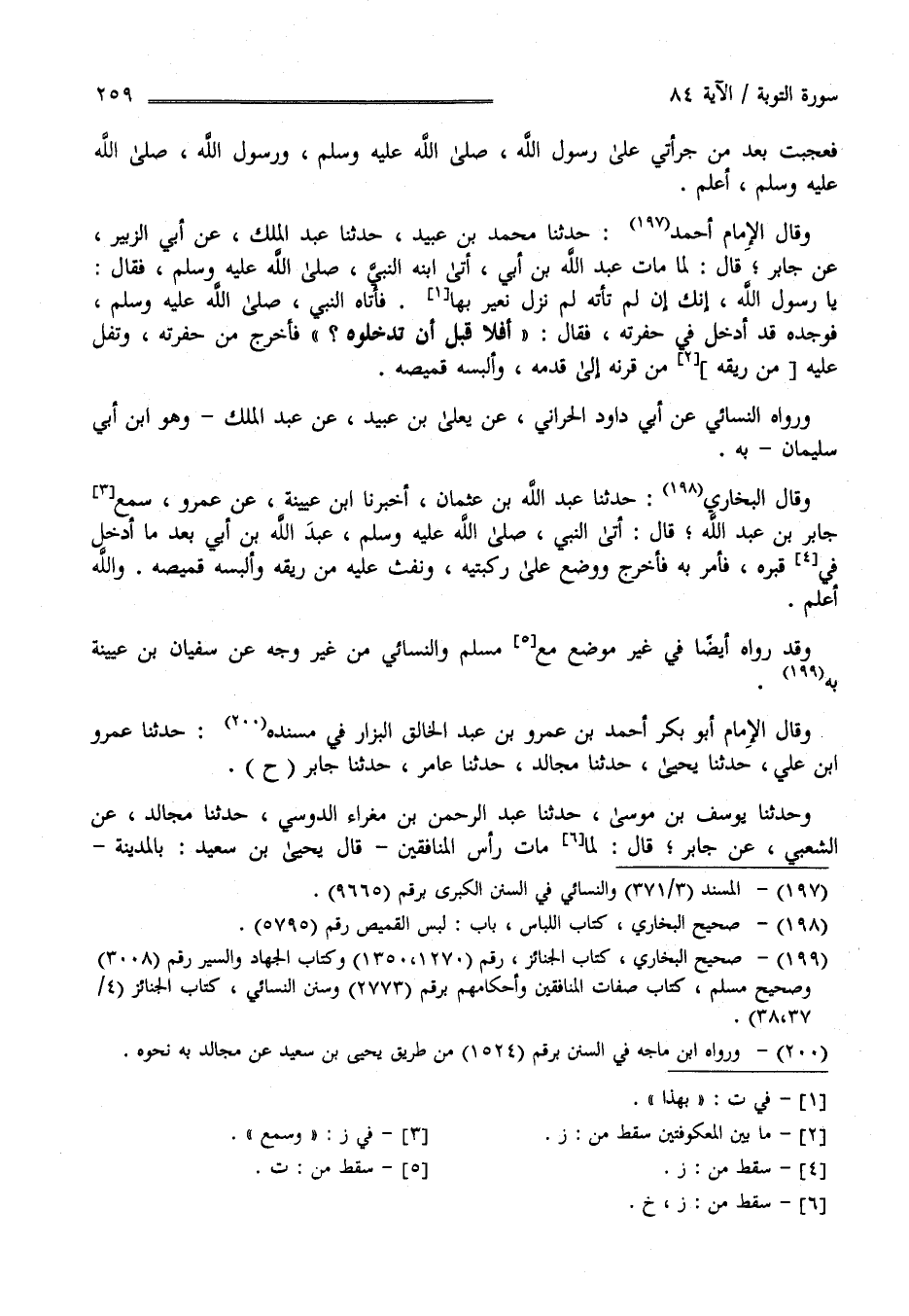 وَقَدْ رَوَاهُ أَيْضًا فِي غَيْر مَوْضِع مُسْلِم وَالنَّسَائِيّ مِنْ غَيْر وَجْه عَنْ سُفْيَان بْن عُيَيْنَة بِهِ وَقَالَ الْإِمَام أَبُو بَكْر أَحْمَد بْن عَمْرو بْن عَبْد الْخَالِق الْبَزَّار فِي مُسْنَده حَدَّثَنَا عَمْرو بْن عَلِيّ حَدَّثَنَا يَحْيَى حَدَّثَنَا مُجَالِد حَدَّثَنَا عَامِر حَدَّثَنَا جَابِر ح وَحَدَّثَنَا يُوسُف بْن مُوسَى حَدَّثَنَا عَبْد الرَّحْمَن بْن مَغْرَاء الدَّوْسِيّ حَدَّثَنَا مُجَالِد عَنْ الشَّعْبِيّ عَنْ جَابِر قَالَ لَمَّا مَاتَ رَأْس الْمُنَافِقِينَ - قَالَ يَحْيَى بْن سَعِيد بِالْمَدِينَةِ –