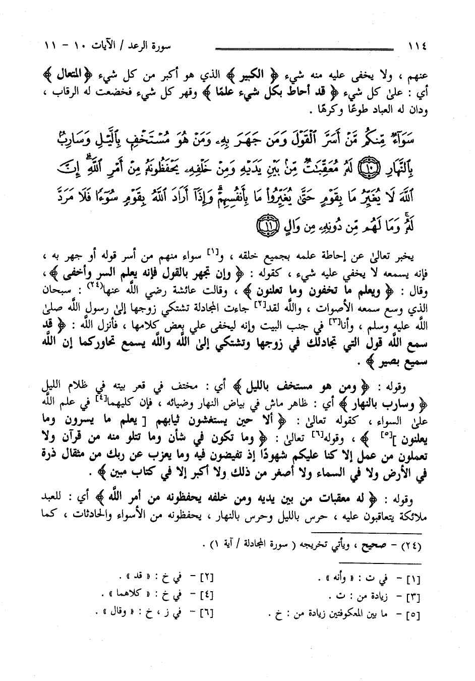 سَوَاءٌ مِنْكُمْ مَنْ أَسَرَّ الْقَوْلَ وَمَنْ جَهَرَ بِهِ وَمَنْ هُوَ مُسْتَخْفٍ بِاللَّيْلِ وَسَارِبٌ بِالنَّهَارِ (10)