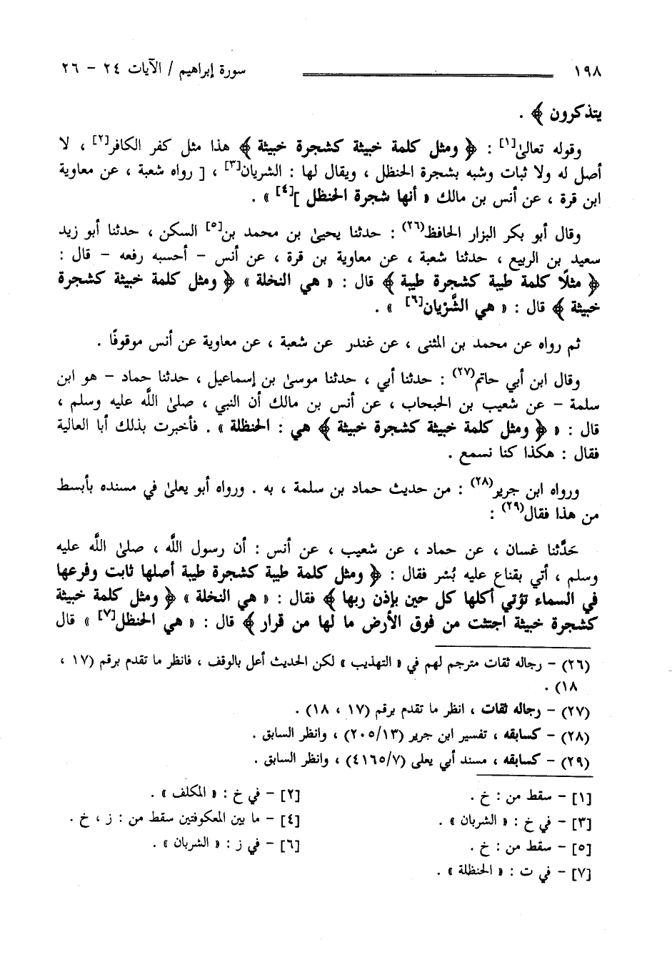 وَمَثَلُ كَلِمَةٍ خَبِيثَةٍ كَشَجَرَةٍ خَبِيثَةٍ اجْتُثَّتْ مِنْ فَوْقِ الْأَرْضِ مَا لَهَا مِنْ قَرَارٍ (26)