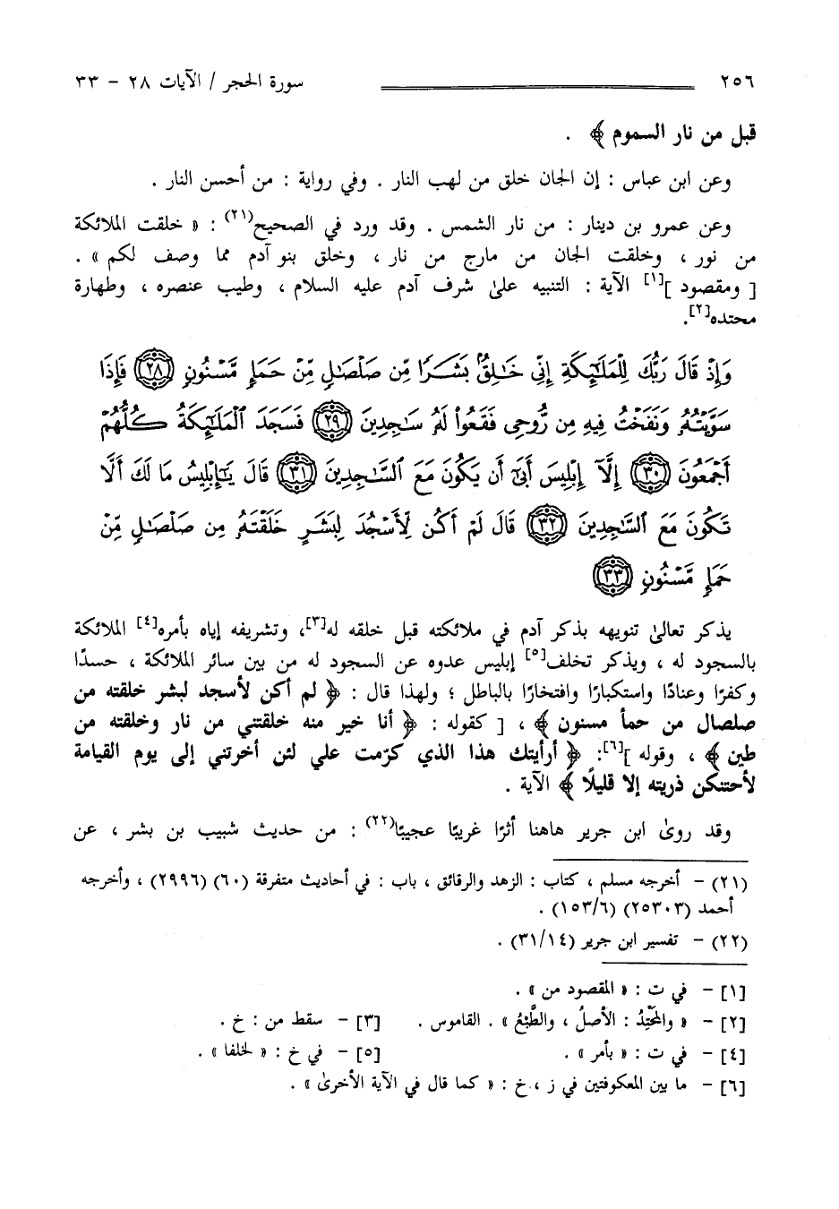 يَذْكُر تَعَالَى تَنْوِيهه بِذِكْرِ آدَم فِي مَلَائِكَته قَبْل خَلْقه لَهُ وَتَشْرِيفه إِيَّاهُ بِأَمْرِ الْمَلَائِكَة بِالسُّجُودِ لَهُ وَيَذْكُر تَخَلُّف إِبْلِيس عَدُوّهُ عَنْ السُّجُود لَهُ مِنْ بَيْن سَائِر الْمَلَائِكَة حَسَدًا وَكُفْرًا وَعِنَادًا وَاسْتِكْبَارًا وَافْتِخَارًا بِالْبَاطِلِ وَلِهَذَا قَالَ " لَمْ أَكُنْ لِأَسْجُد لِبَشَرٍ خَلَقْته مِنْ صَلْصَال مِنْ حَمَإٍ مَسْنُون" كَقَوْلِهِ " أَنَا خَيْر مِنْهُ خَلَقْتنِي مِنْ نَار وَخَلَقْته مِنْ طِين " وَقَوْله " أَرَأَيْتُك هَذَا الَّذِي كَرَّمْت عَلَيَّ" الْآيَة .