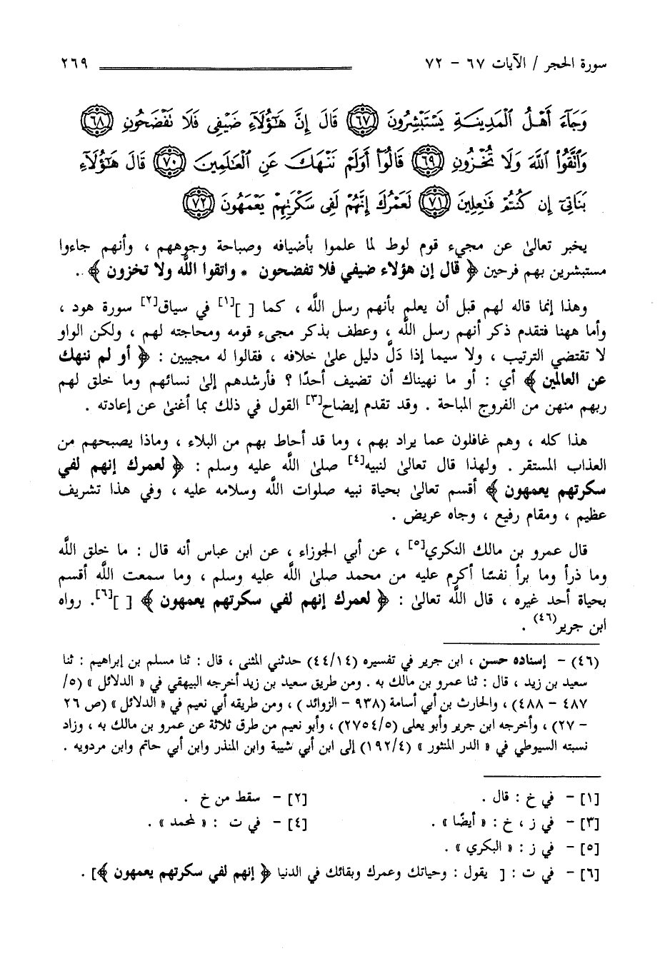 قَالَ اللَّه تَعَالَى" لَعَمْرك إِنَّهُمْ لَفِي سَكْرَتهمْ يَعْمَهُونَ " يَقُول وَحَيَاتك وَعُمْرك وَبَقَائِك فِي الدُّنْيَا " إِنَّهُمْ لَفِي سَكْرَتهمْ يَعْمَهُونَ" .
