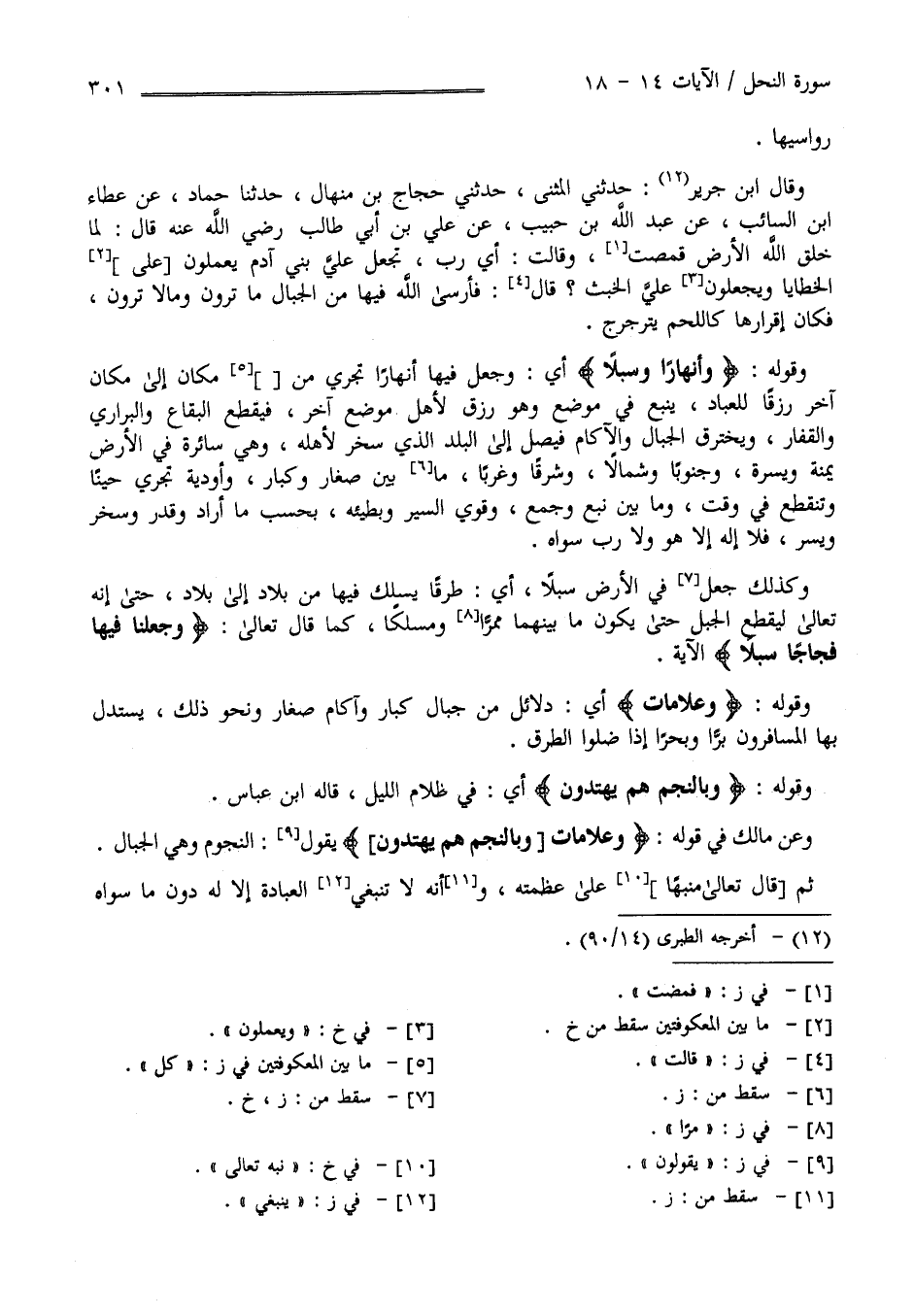 وَعَنْ مَالِك فِي قَوْله " وَعَلَامَات وَبِالنَّجْمِ هُمْ يَهْتَدُونَ" يَقُول النُّجُوم وَهِيَ الْجِبَال .
