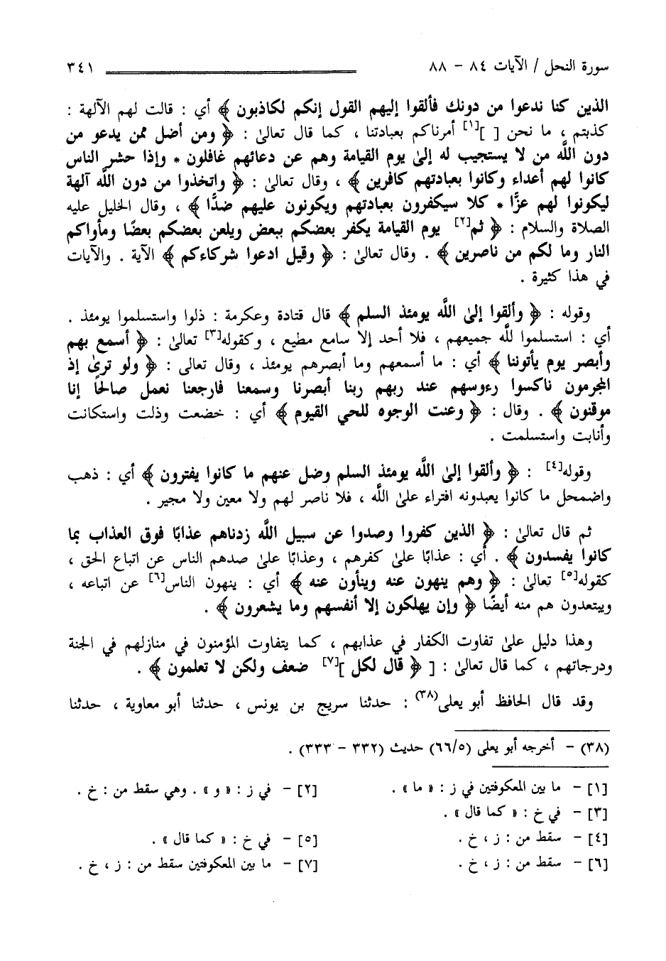 ثُمَّ قَالَ تَعَالَى الَّذِينَ كَفَرُوا وَصَدُّوا عَنْ سَبِيل اللَّه زِدْنَاهُمْ عَذَابًا " الْآيَة أَيْ عَذَابًا عَلَى كُفْرهمْ وَعَذَابًا عَلَى صَدّهمْ النَّاس عَنْ اِتِّبَاع الْحَقّ كَقَوْلِهِ تَعَالَى " وَهُمْ يَنْهَوْنَ عَنْهُ وَيَنْأَوْنَ عَنْهُ " أَيْ يَنْهَوْنَ النَّاس عَنْ اِتِّبَاعه وَيَبْتَعِدُونَ هُمْ مِنْهُ أَيْضًا " وَإِنْ يُهْلِكُونَ إِلَّا أَنْفُسهمْ وَمَا يَشْعُرُونَ " وَهَذَا دَلِيل عَلَى تَفَاوُت الْكُفَّار فِي عَذَابهمْ كَمَا يَتَفَاوَت الْمُؤْمِنُونَ فِي مَنَازِلهمْ فِي الْجَنَّة وَدَرَجَاتهمْ كَمَا قَالَ تَعَالَى " قَالَ لِكُلٍّ ضِعْف وَلَكِنْ لَا تَعْلَمُونَ " وَقَدْ قَالَ الْحَافِظ أَبُو يَعْلَى حَدَّثَنَا شُرَيْح بْن يُونُس حَدَّثَنَا أَبُو مُعَاوِيَة حَدَّثَنَا